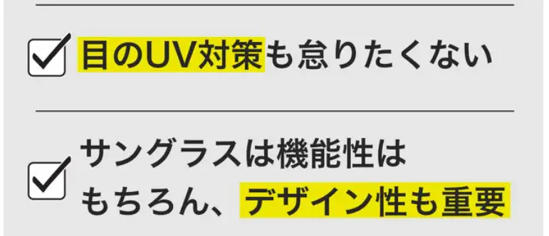 最近では直射日光の乱反射等による事故防止や、紫外線による目の健康被害防止のため、警察官のサングラス着用の新ルールが採用されるなど、屋外活動でのサングラスは必須となってきています。