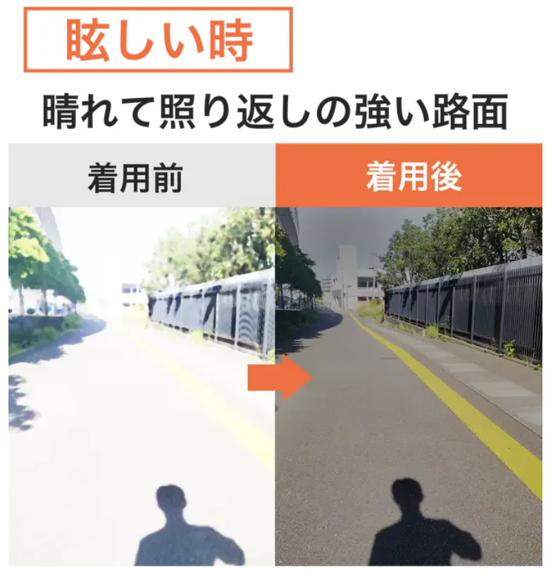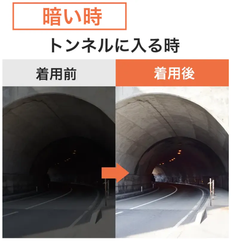 眩しい太陽の下でも紫外線から目をしっかり保護します。次々に明るさが変わるシーンでもサングラスの付け外しは不要です!