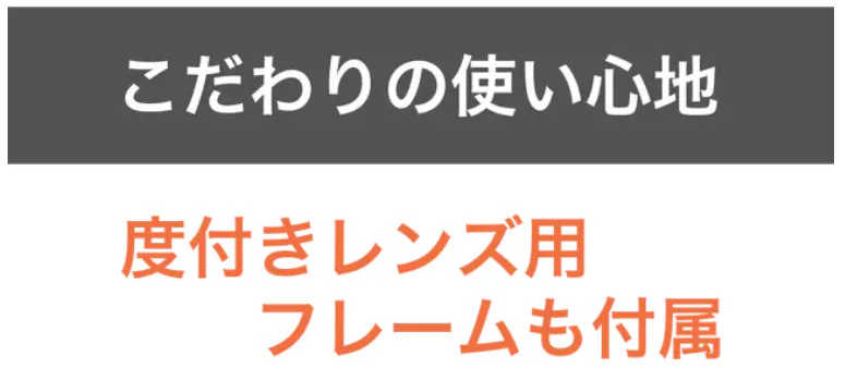 A、度付きレンズを取り付けられるフレームもセットでお届けいたしますので、普段メガネをかけている方も快適にご使用いただけます。