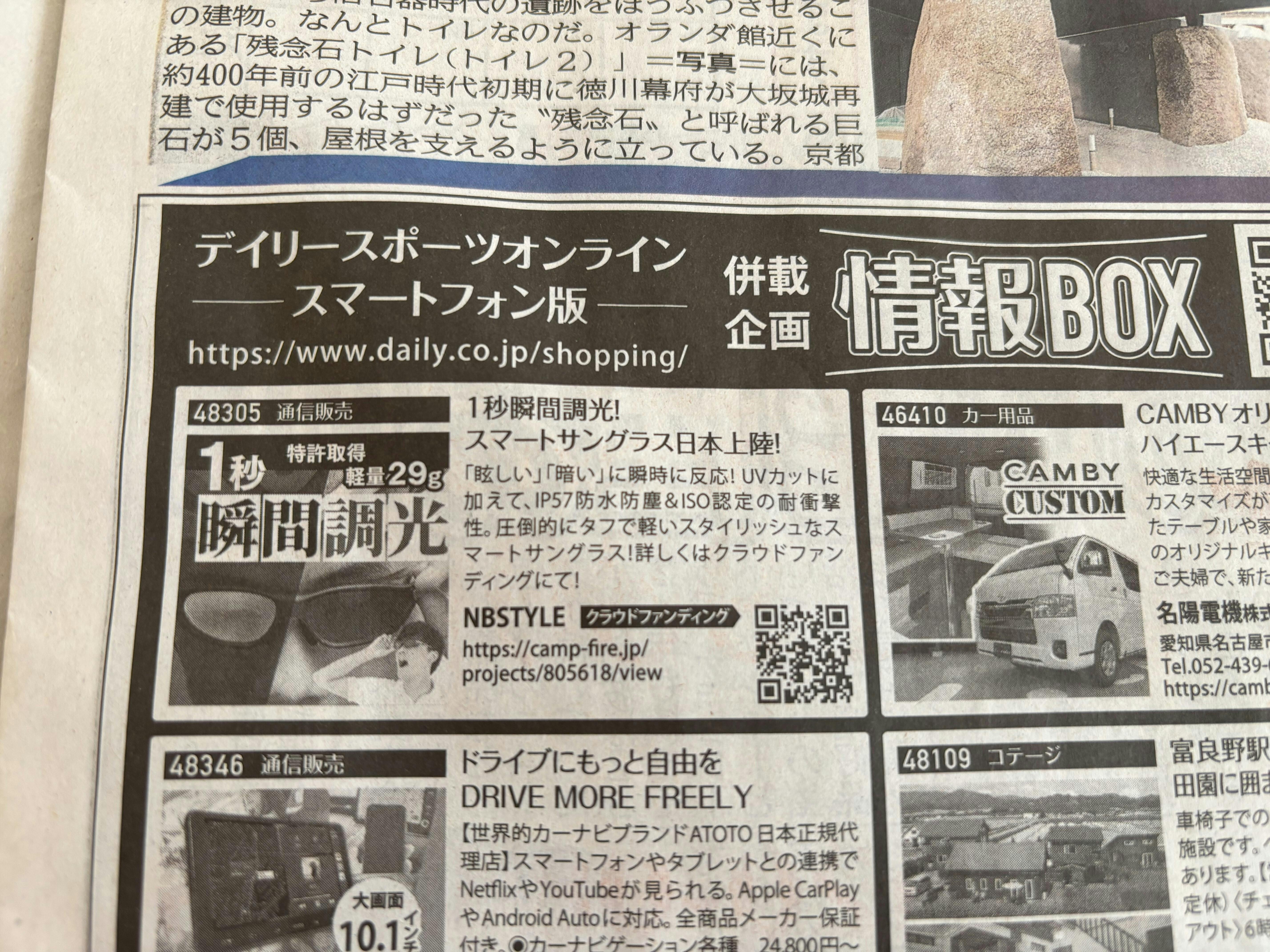瞬間調光サングラスが、大手「デイリー新聞」で紹介されました!