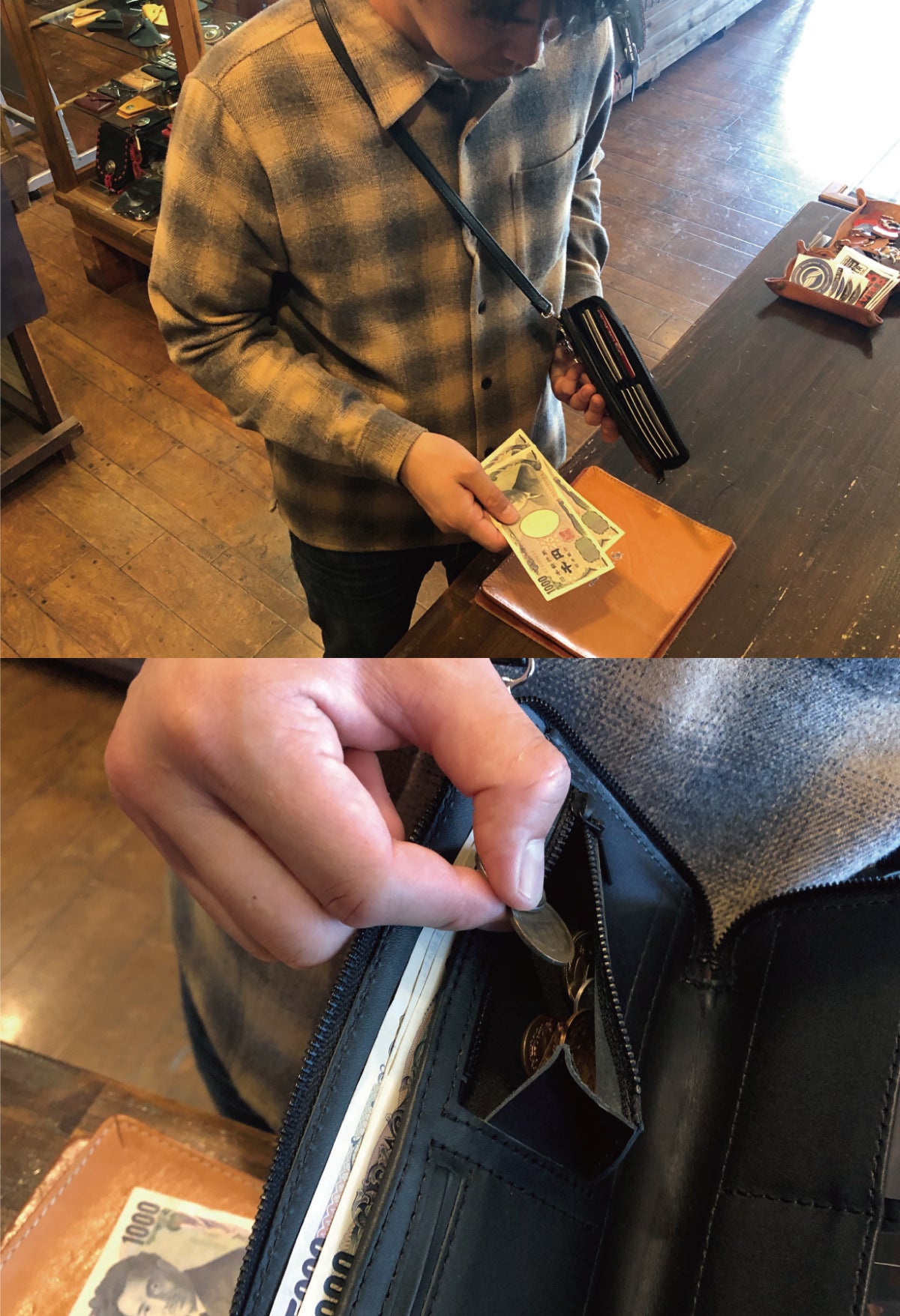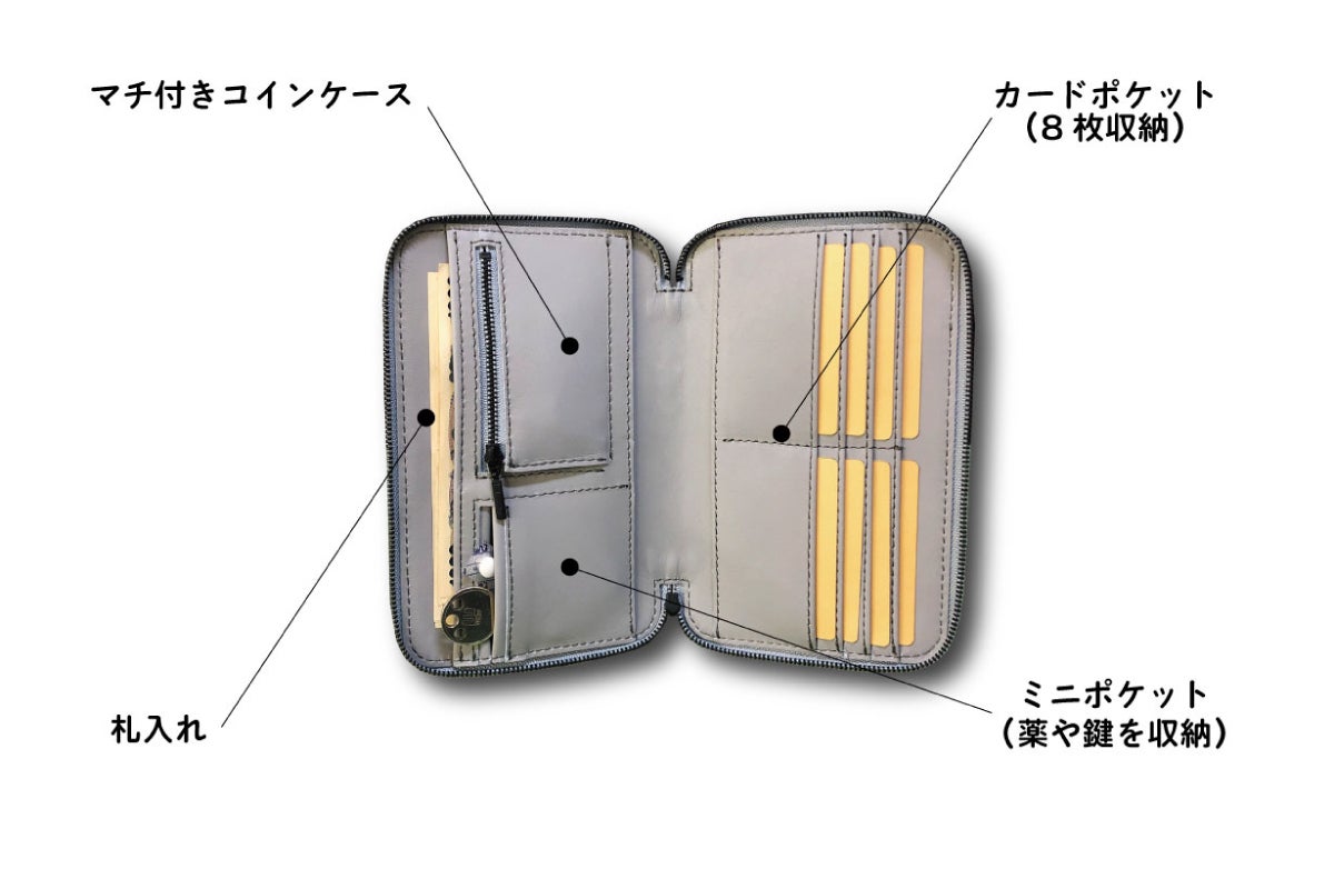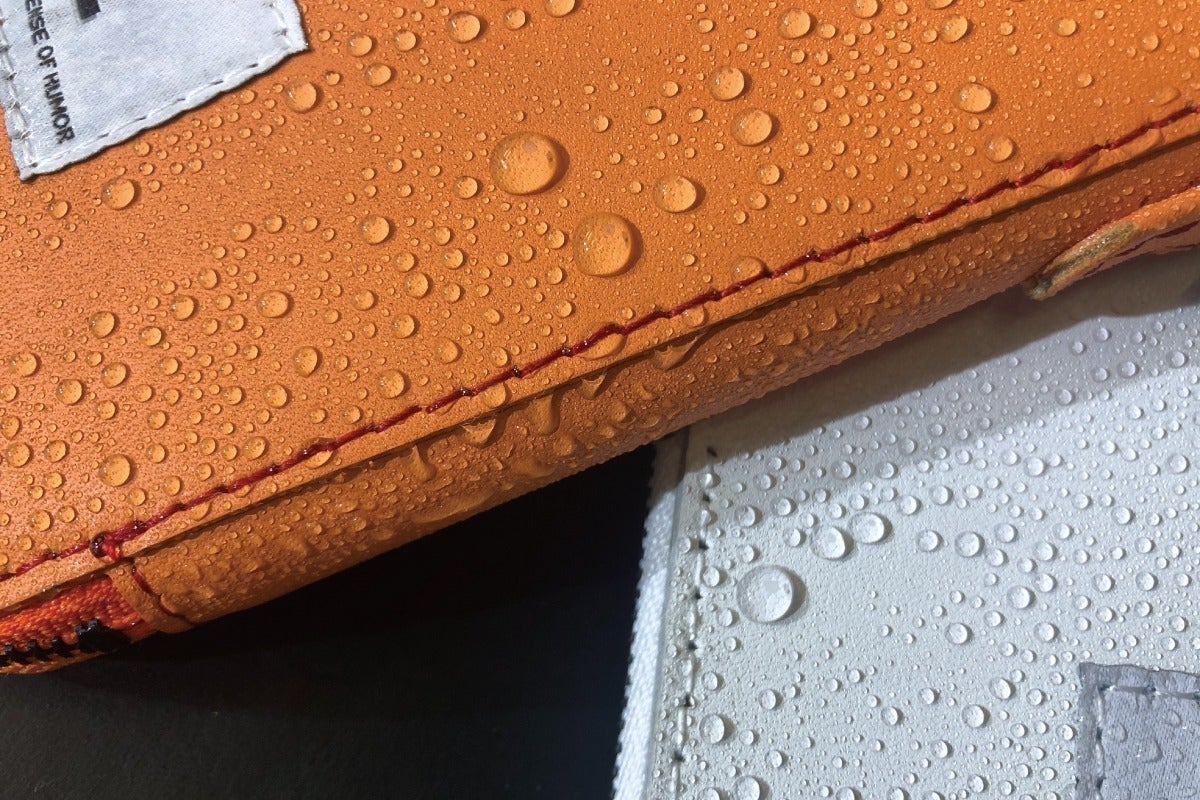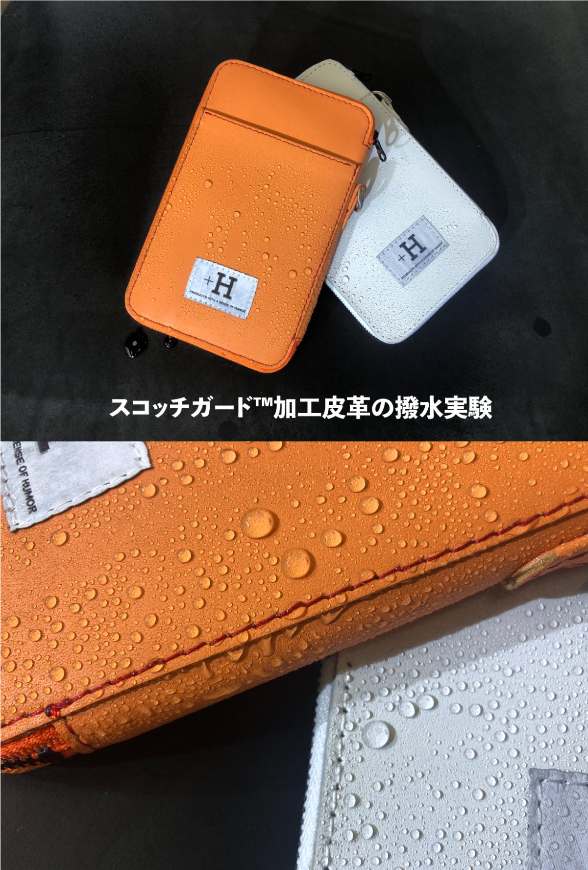 使用皮革は防水加工を施してありますが、使用ファスナーに防水機能はありません。そのためファスナーからの水の侵入、及び縫製に於ける針孔からの水の侵入の恐れがあります。