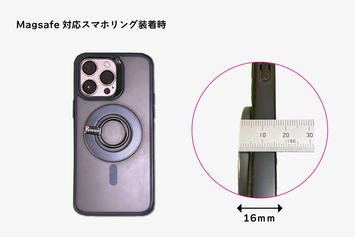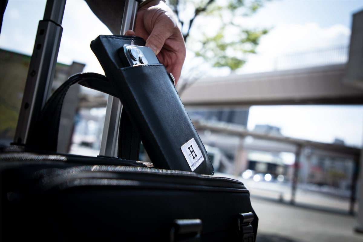 厚さ20㎜(スマホ無しの場合)なのでバッグインも楽々可能です。