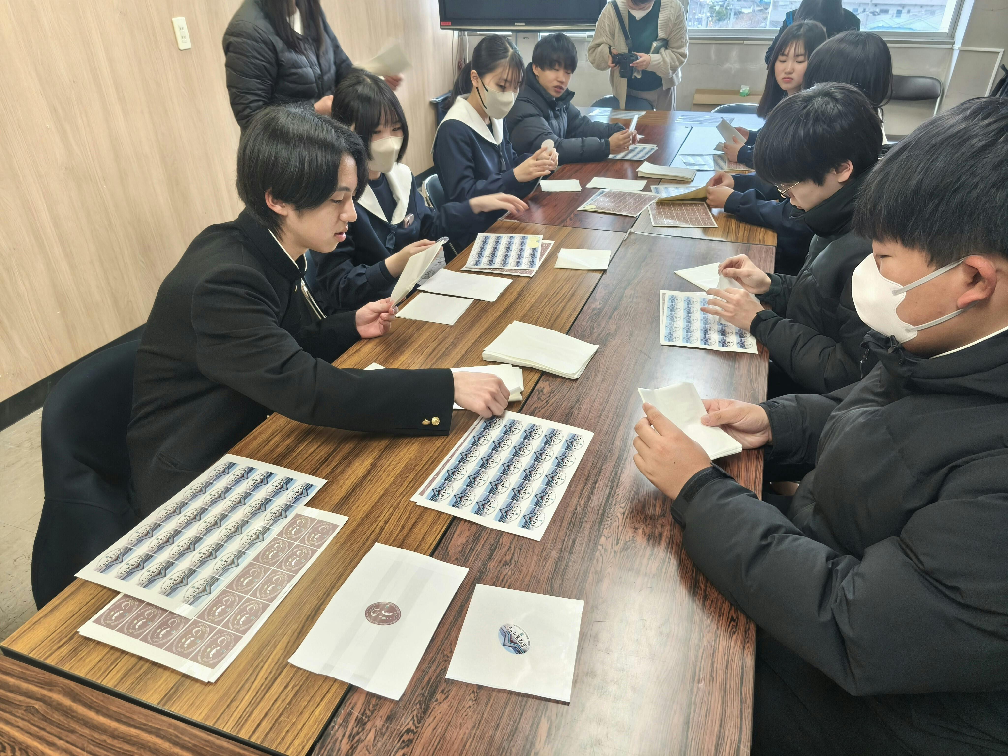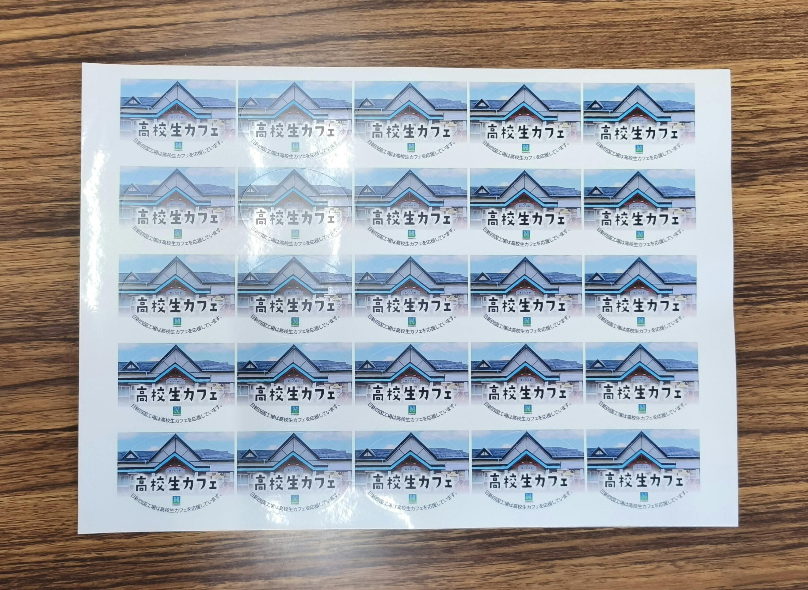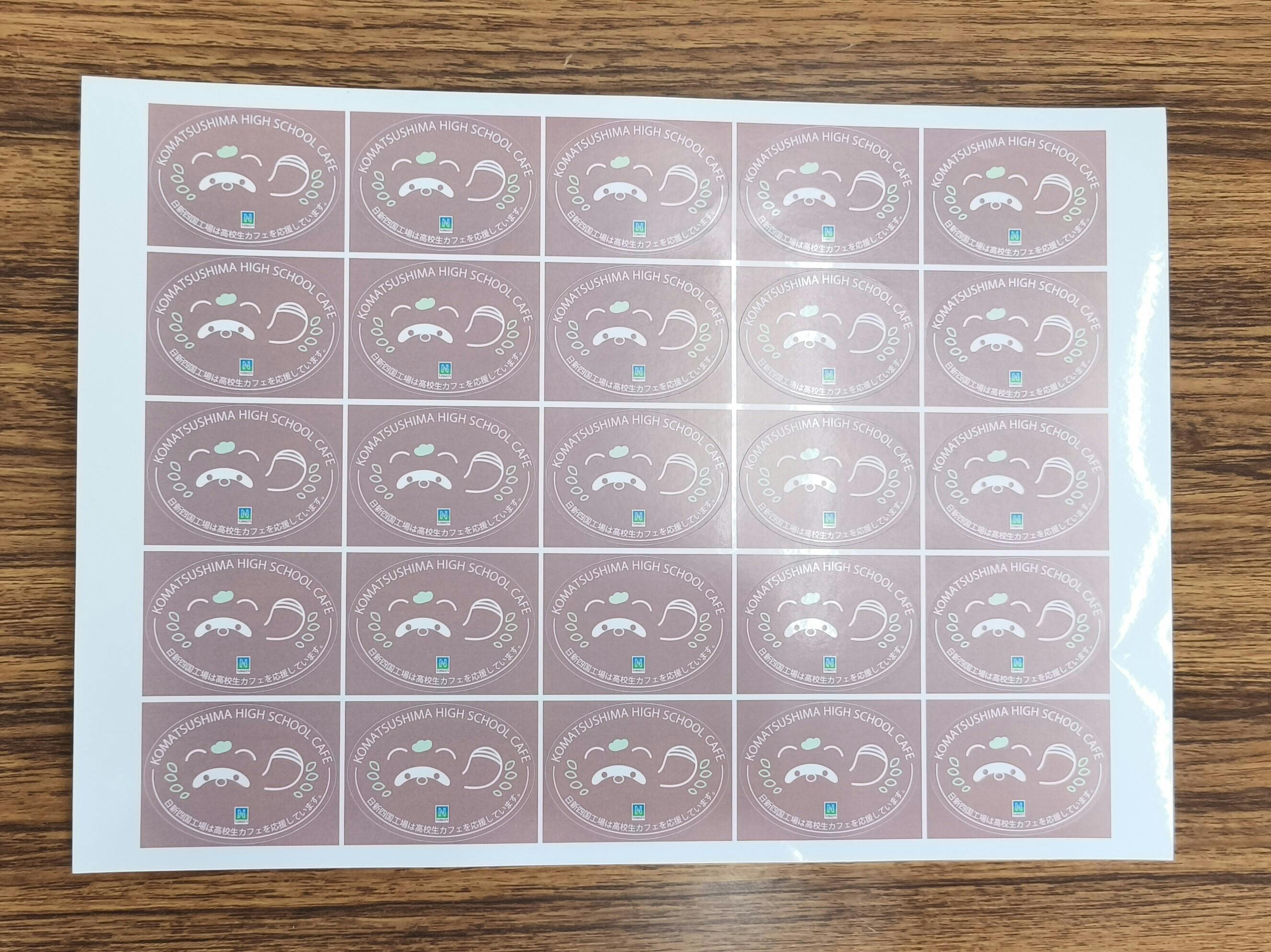 今日は、私たち松高生がデザインした「高校生カフェのシール」を、
