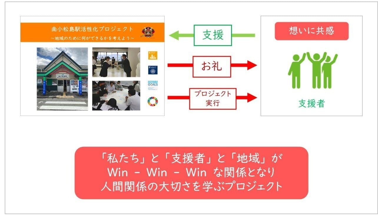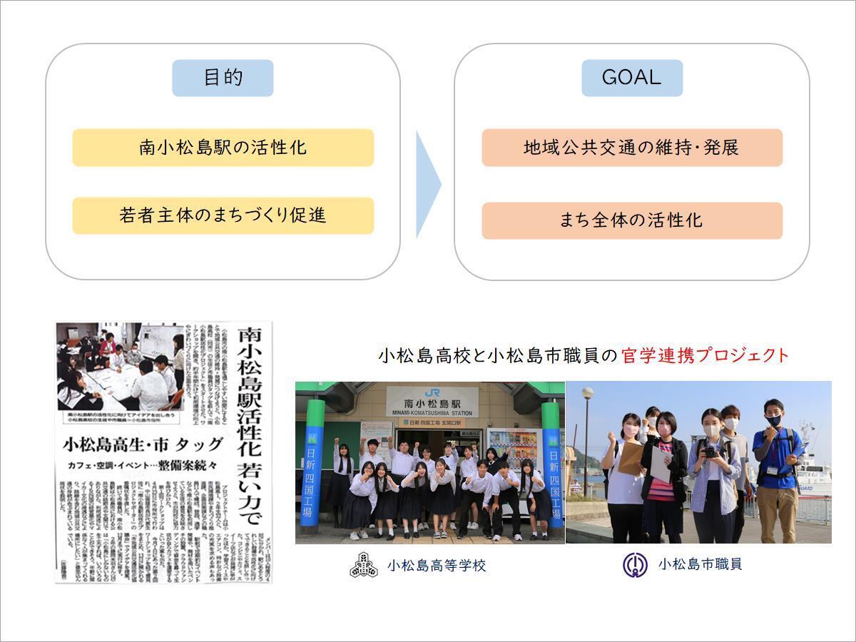 このプロジェクトの目的は「南小松島駅の活性化」「若者主体のまちづくりの促進」です。