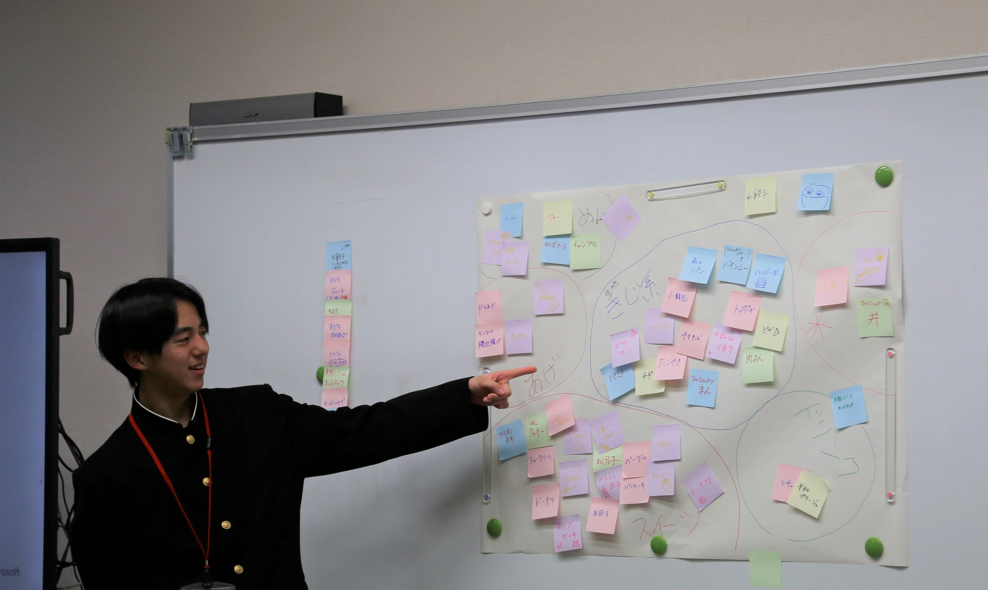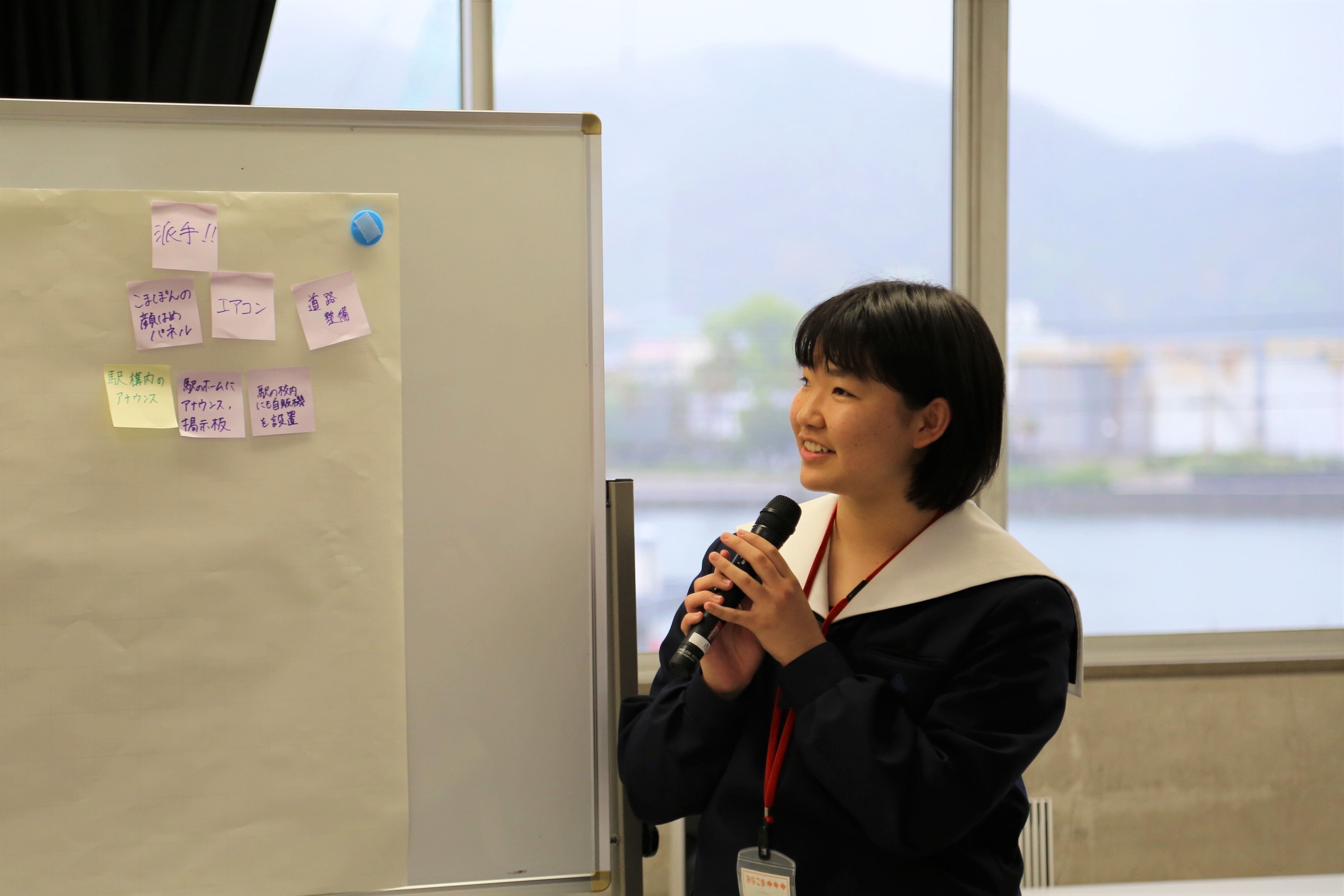 そして、私たちは「南小松島駅にこんなのがあったら、楽しい! 嬉しい!」「南小松島駅の楽しい、嬉しいを実現するために、私たちにできること」をテーマに、グループワークを行いました。