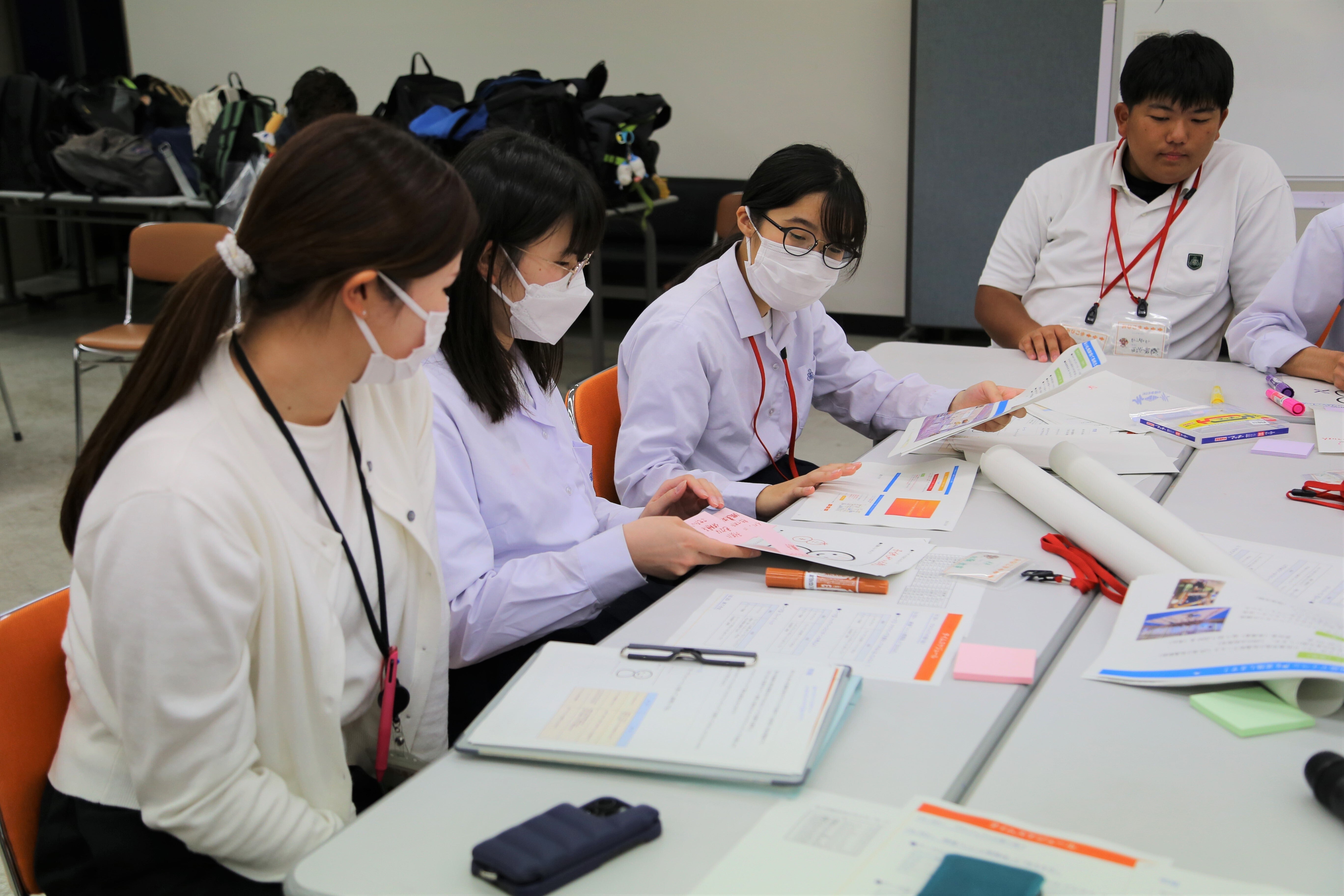 オリジナリティがあるか、金銭的に厳しいものでなく、実現性があるか、駅に賑わいができ、駅利用者が増えることで、地域公共交通の維持・発展に繋がるという目的に合っているか、駅利用者に利益があるものかなどについて考え、意見をまとめました。