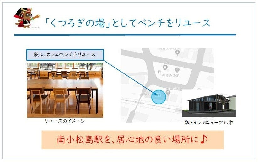 高校生カフェに使用した「ベンチ」を、南小松島駅の待合環境向上のために、リユース(再利用)します。