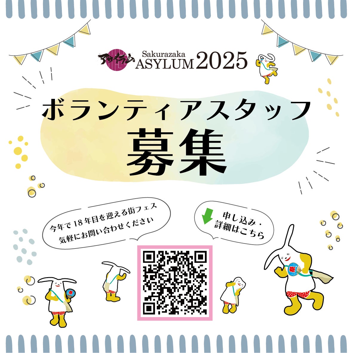 『Sakurazaka ASYLUM 2025実行委員会』では、一緒にイベントを創って頂けるボランティアスタッフを募集します。本イベントは、各関係者はもとよりボランティアスタッフの皆さんに支えられて、今年で18年目を迎えます。参加する全てのアーティストや観客との近すぎる!?出会いもスタッフとして参加する大きな魅力です。