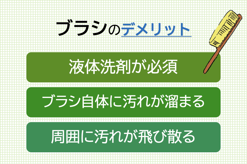 ※従来からある、ブラシを使った清掃具では短時間で毛先に汚れが堆積してしまうので、繰り返しての使用は困難です。