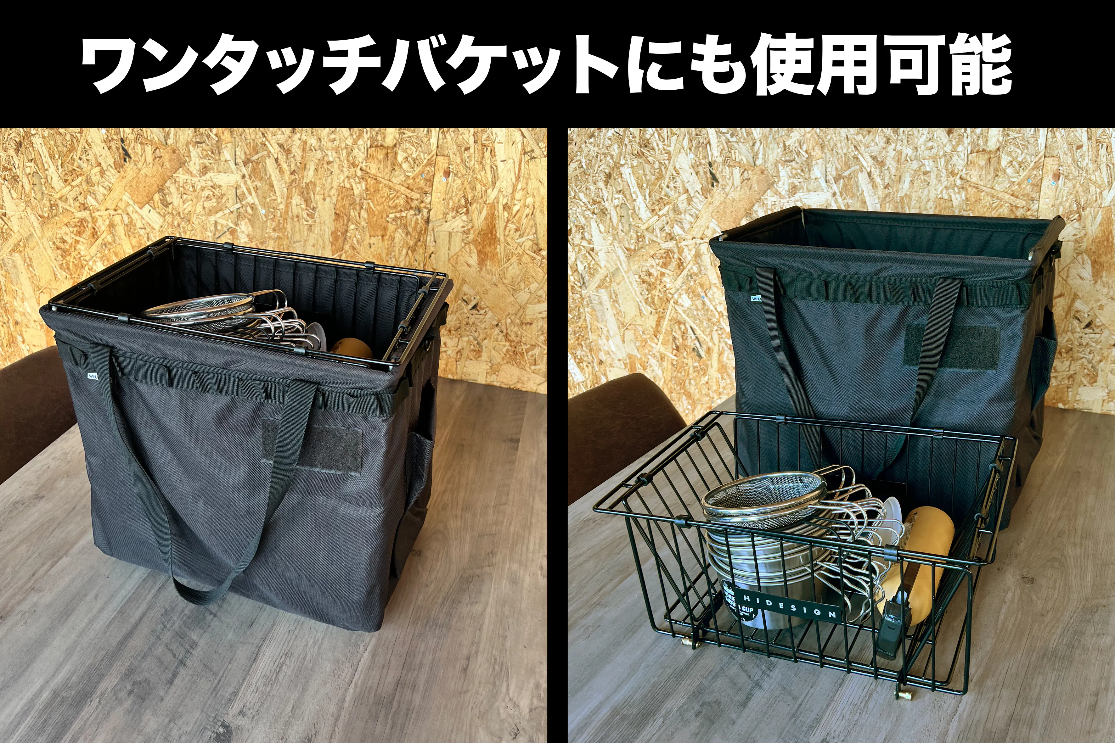 「限られたスペースを有効に活用したい」そんな悩みを解消するために、折り畳み式でコンパクトに収納でき定番のIGT規格に対応するメッシュバケットを制作しました。