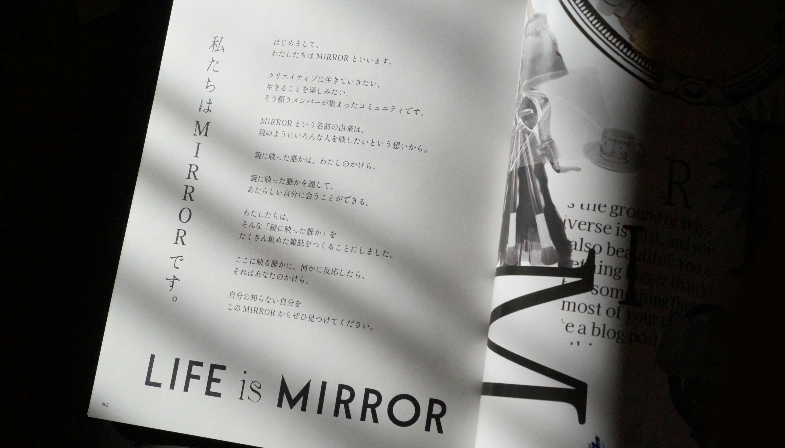 雑誌のイントロダクションがこの言葉から始まる通り、私たち雑誌編集部の母体は、ファッションコミュニティMIRROR でした(当時)その中の雑誌好き、紙媒体好きが集まって、編集部は結成されたのです。