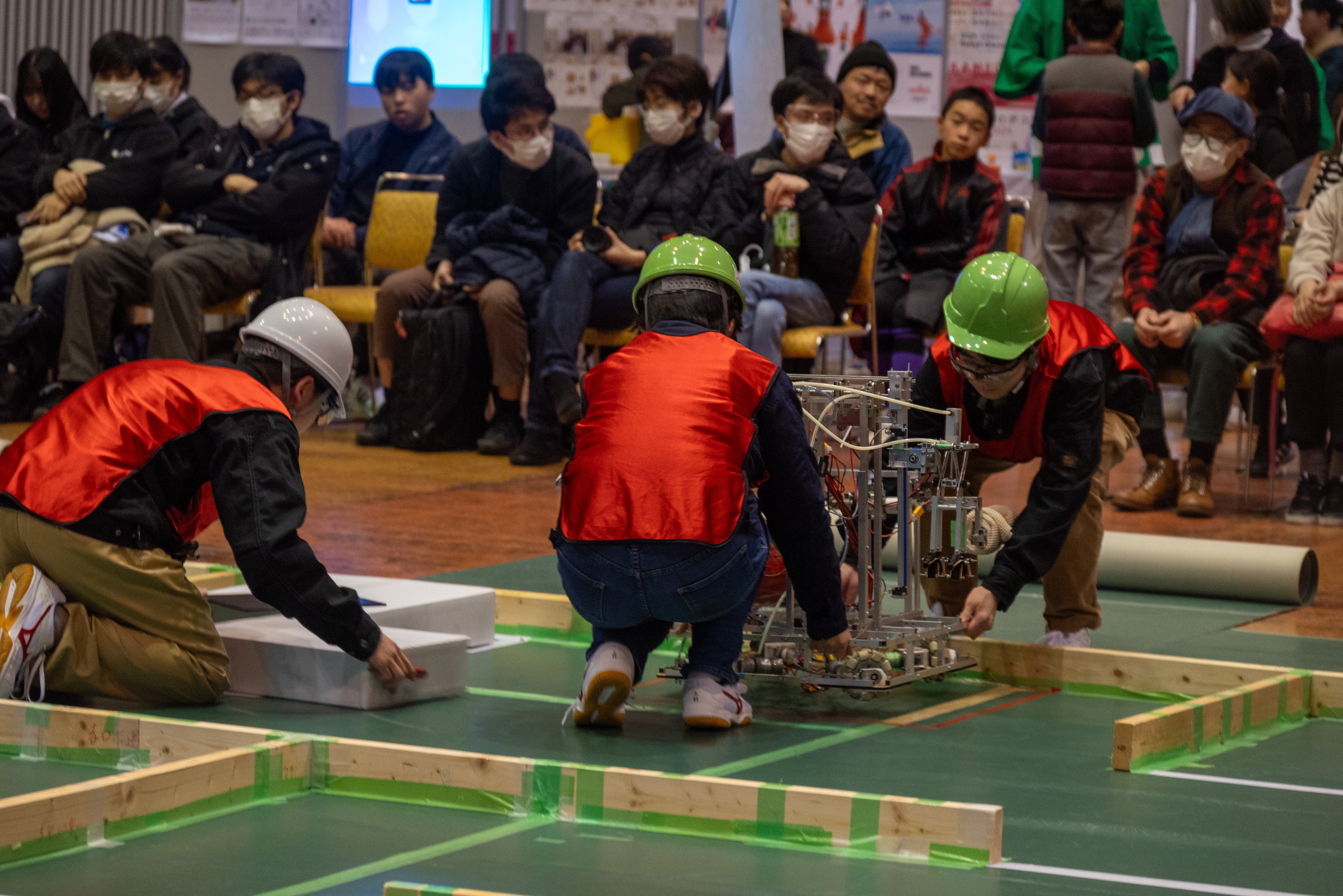 試合に向けてセッティング中の選手(関西春ロボコン2024)