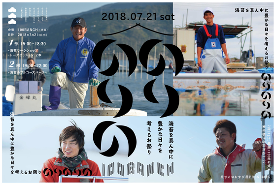 7月21日(土)『のりのりの 〜海苔を真ん中に、豊かな1日を考えるお祭り〜』を渋谷100BANCHで開催します!