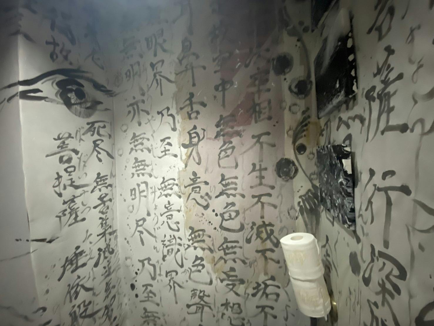 ※当館のお手洗いの内装は、岡山で活躍されるアーティストshinPo mai氏(MARUME design)に制作していただいております。制作風景instagram[その1・その2]。