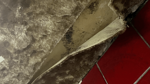 夏場にお手洗いの天井から水漏れが発生し、その影響で天井材が湿気を吸収し、一部にシミや剥がれ、さらには腐食が確認されました。このまま放置すれば、安全性や衛生面を損なう恐れがあります。そのため、天井の修繕工事を最優先事項として、早急に対応する必要があります。