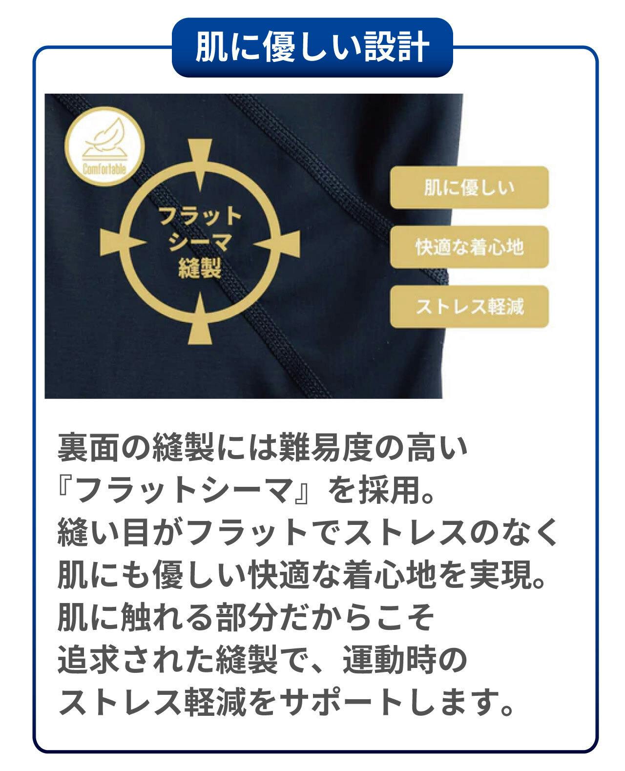 そのため、脱着時にはウェアを引っ張る動作が必要になることがありますが、これはサイズが小さいわけではなく、シャツの特性上、自然と必要となる作業です。着用後は筋肉や体の動きに合わせて伸び縮みするため、動きが制限されることはありません。ご安心の上、ご使用ください。
