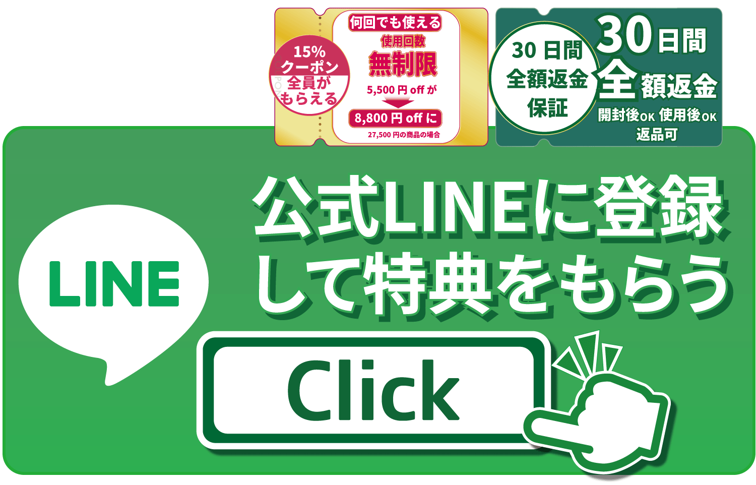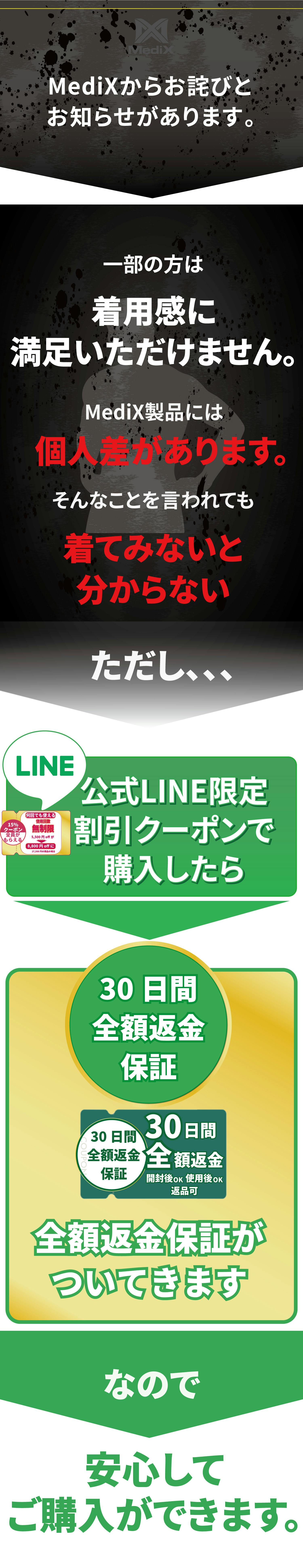 A.商品到着から30日間以内、かつ、公式LINE登録者限定クーポンを使用してのご購入者様に限り、全額返金対応を致します。