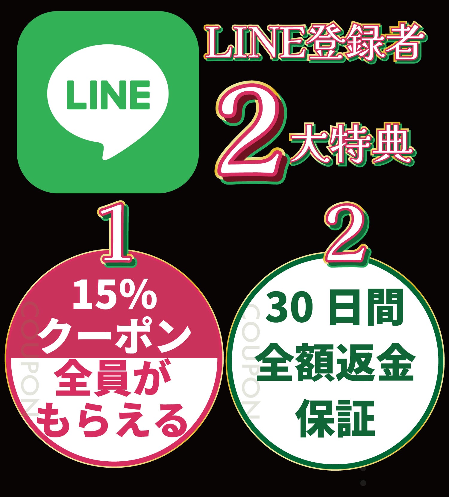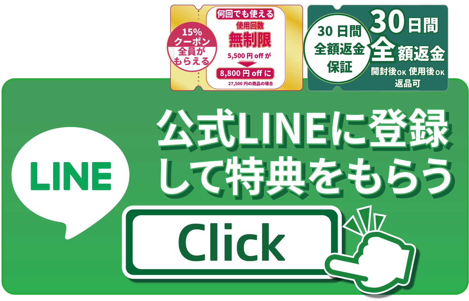 A.商品到着から30日間以内、かつ、公式LINE登録者限定クーポンを使用してのご購入者様に限り、全額返金対応を致します。