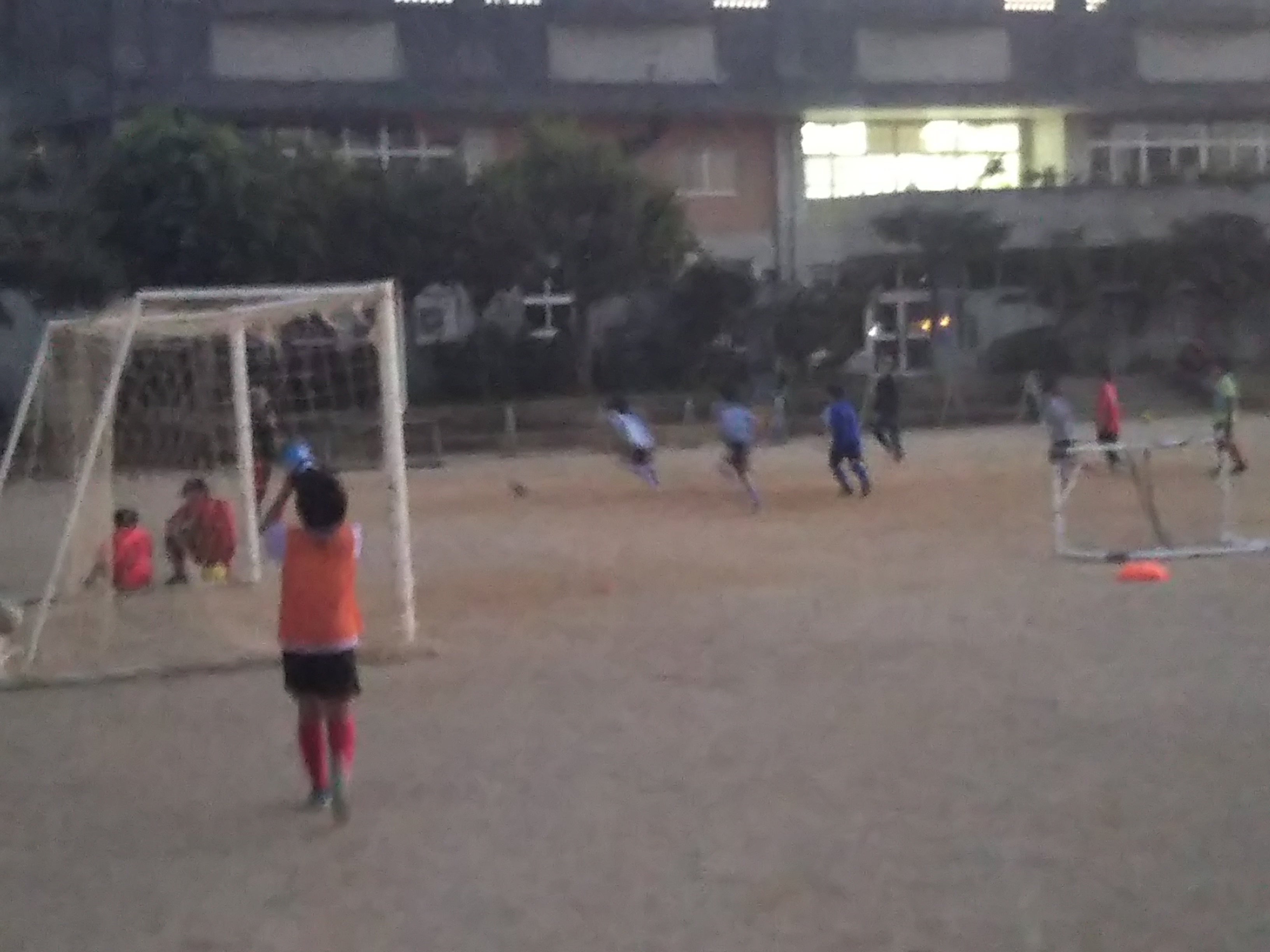 市川遠征チーム三回目のトレーニング4ゴールのトレーニングゲーム見るをテーマに意識して目玉をぐるぐる動かしながらのゲーム(≧∇≦)なんとなくだけど中間守備に気づいたかなちばりよ~(≧∇≦)