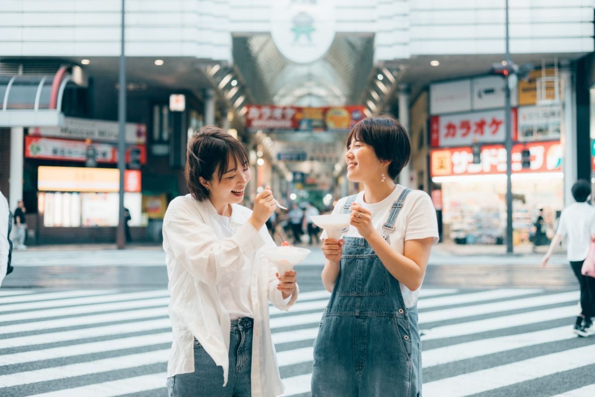 (2人が食べているのは、鹿児島名物「しろくま」です🍧)