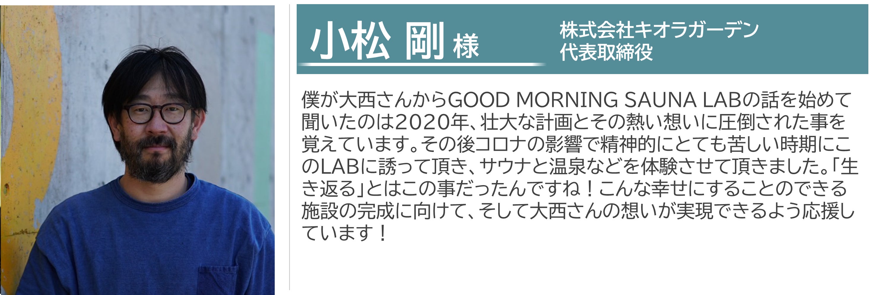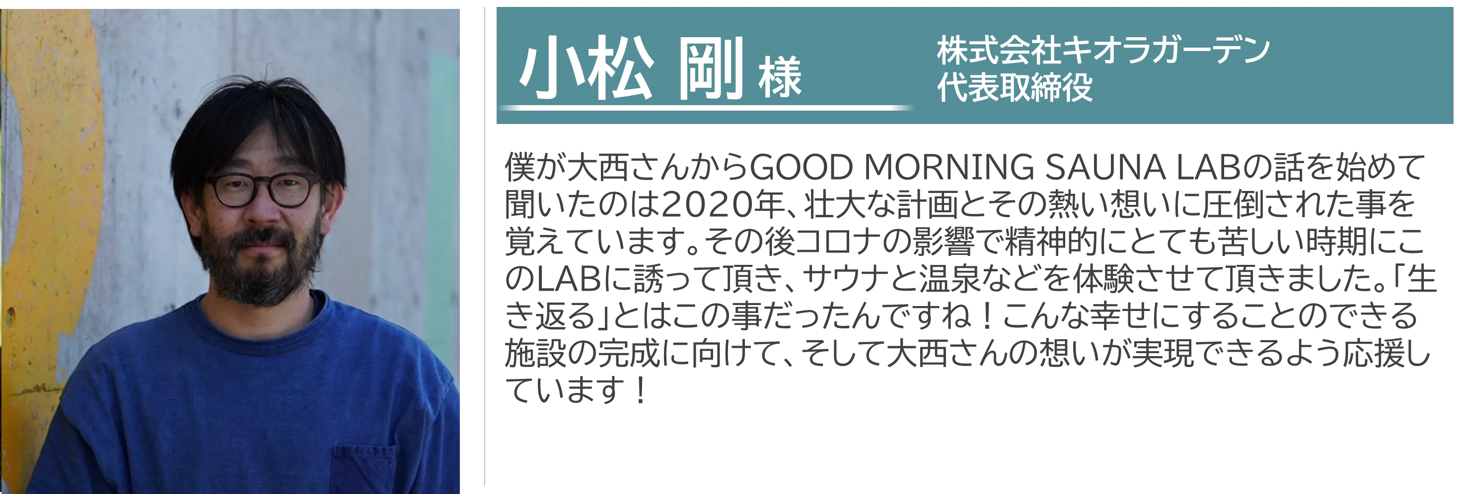 2024/11/28 11:09皆さん、「GOOD MORNING SAUNA LAB」への温かいご支援、ご協力に感謝いたします。クラウドファンディング公開後はドキドキの毎日で落ち着かない日々を過ごしておりますが、より良い体験をみなさんにお届けできるよう頑張っていきますので、引き続き拡散などご協力いただけますと幸いです。さて、少しご報告が遅れてしまったのですが、11月22日に仙台放送「Live News it!」にて、当施設のご紹介をいただけました!まだ少しOA映像が見れますので、是非ご覧くださいませ^^※あと数日で非公開になると思います…!寒暖差が激しく風邪も流行っておりますので、皆さんくれぐれもご自愛ください。 もっと見る