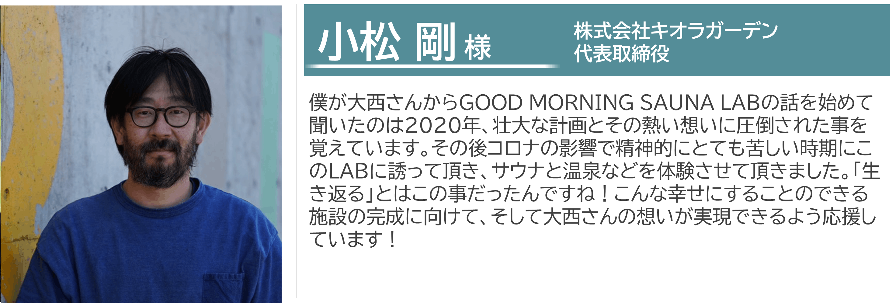 2024/11/28 11:09皆さん、「GOOD MORNING SAUNA LAB」への温かいご支援、ご協力に感謝いたします。クラウドファンディング公開後はドキドキの毎日で落ち着かない日々を過ごしておりますが、より良い体験をみなさんにお届けできるよう頑張っていきますので、引き続き拡散などご協力いただけますと幸いです。さて、少しご報告が遅れてしまったのですが、11月22日に仙台放送「Live News it!」にて、当施設のご紹介をいただけました!まだ少しOA映像が見れますので、是非ご覧くださいませ^^※あと数日で非公開になると思います…!寒暖差が激しく風邪も流行っておりますので、皆さんくれぐれもご自愛ください。 もっと見る