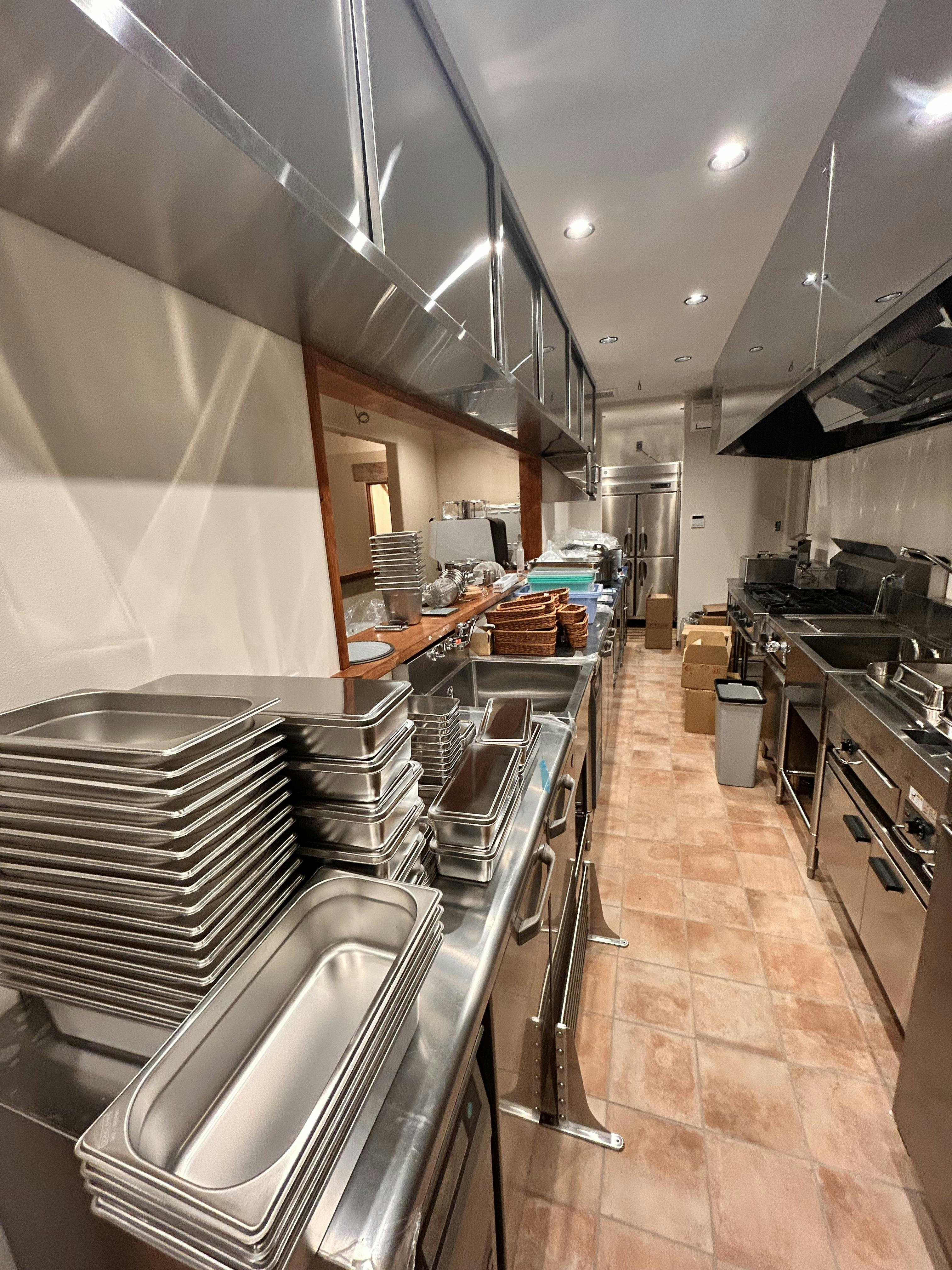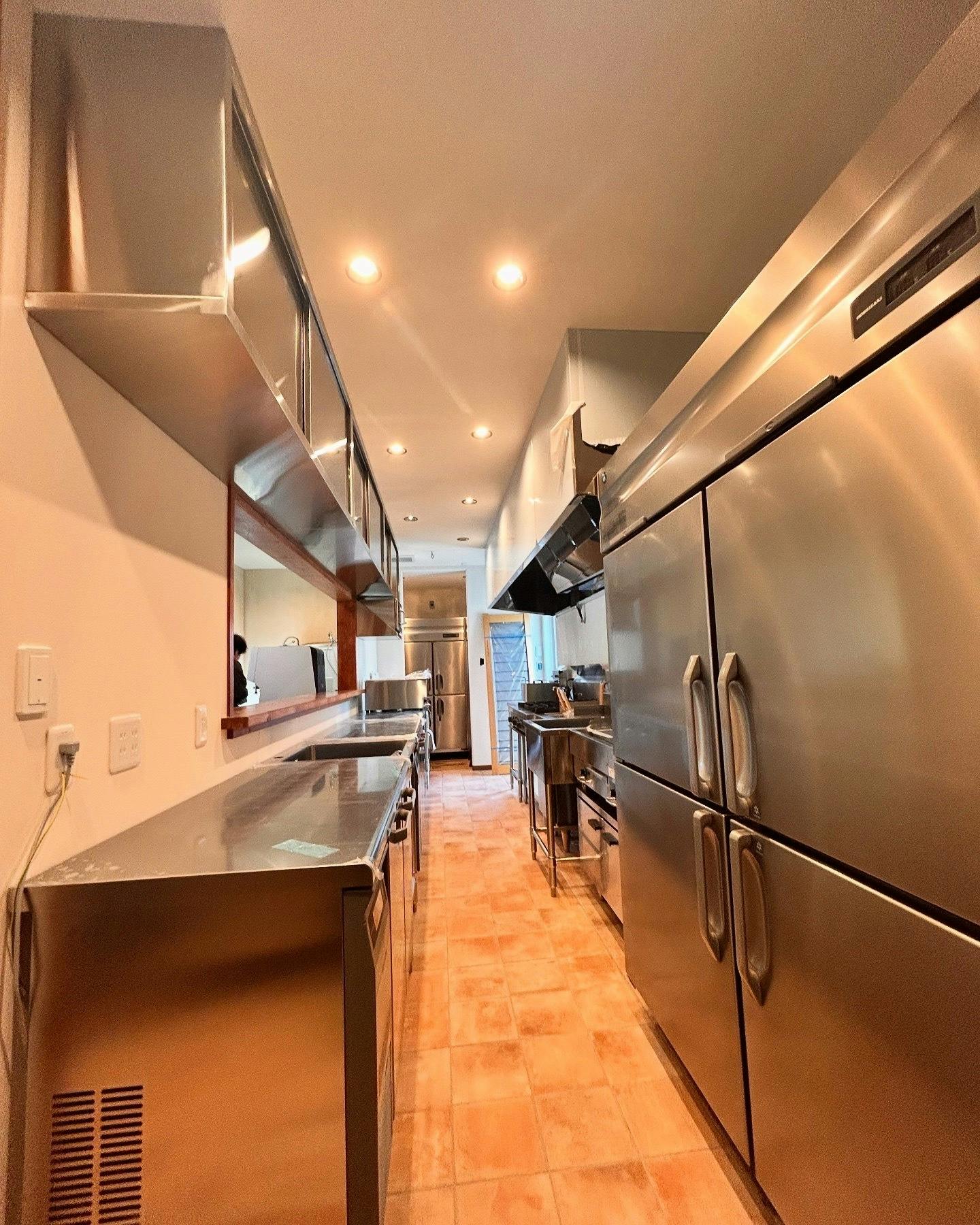2025/03/16 12:43こんにちは!いつもご覧いただきありがとうございます!本日の【内装紹介】はキッチンです!中々お客様の目には入らない部分ですね!architect innovationの吉田社長が、キッチンまでこんなにカッコよく作ってくださいました!学生時代のバイト含め十数店舗のキッチンを見て来ましたが、こんなかっこいちキッチンはなかった!自慢の厨房です!今回厨房機器類は全てタニコーさんに依頼しました。厨房設置図面に関しては自身で考えた配置ですが、プロのアドバイスを受け更に使いやすく配置してくださいました。とても勉強になりました!現在外構工事を行なっております。そちらも、ある程度形ができたら公開していきたいと思います!今はただ地面に穴が空いているだけなので…。笑引き続き、進捗報告楽しみにお待ちください♪菓詩工房わたなべ 渡部 匠 もっと見る