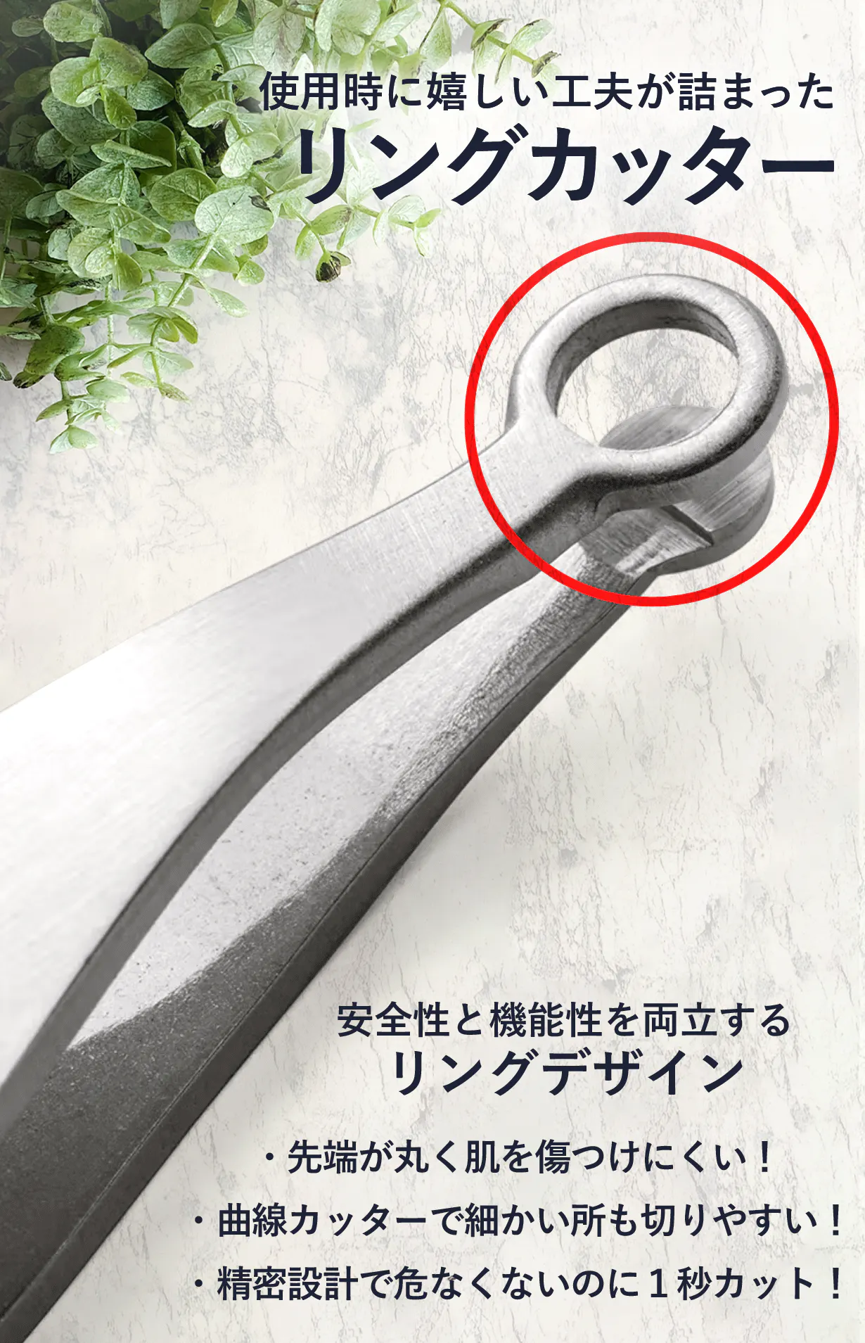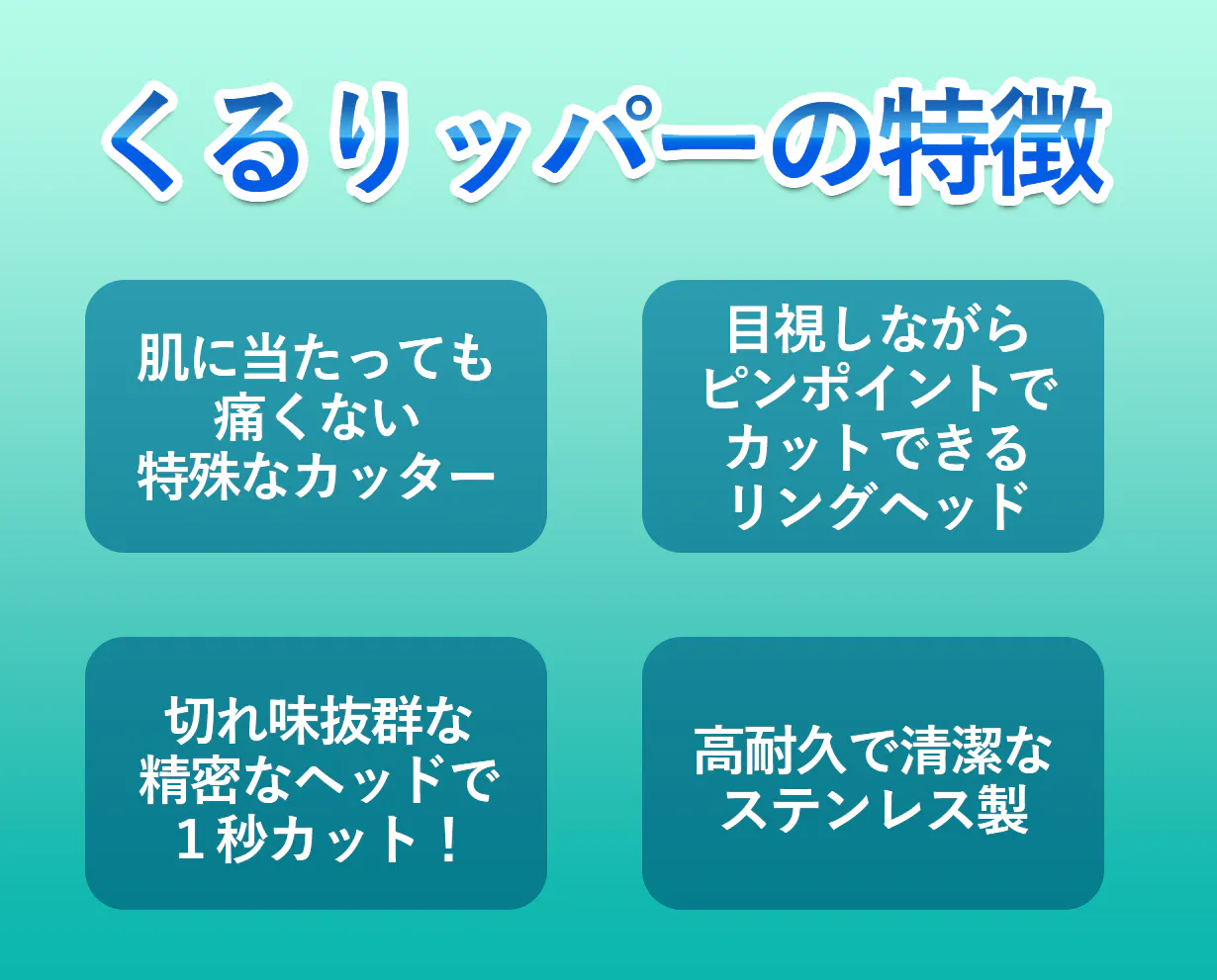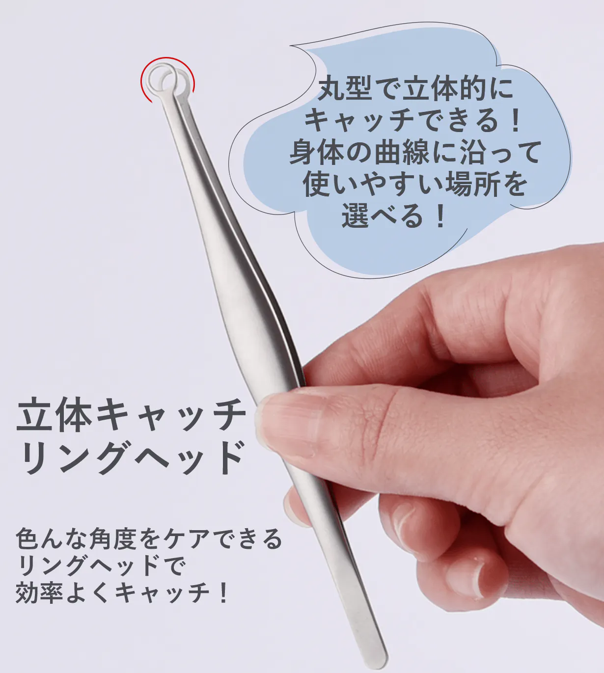 くるりと丸いリング状の丸型ヘッドを採用した【くるりッパー】は、ヘッドが触れても非常に優しい肌当たり!