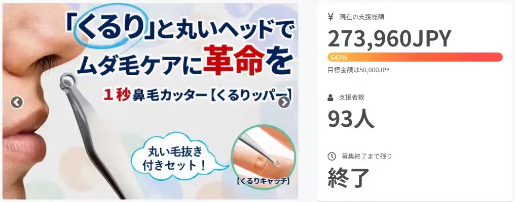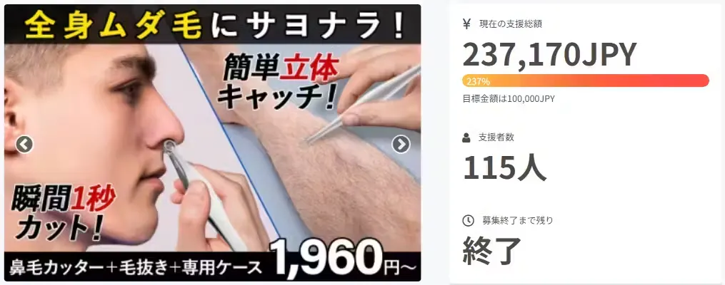 皆様にご支援いただいたリングヘッドの1秒鼻毛カッターが、同じくリングヘッドの毛抜きとセットになって帰ってきました。
