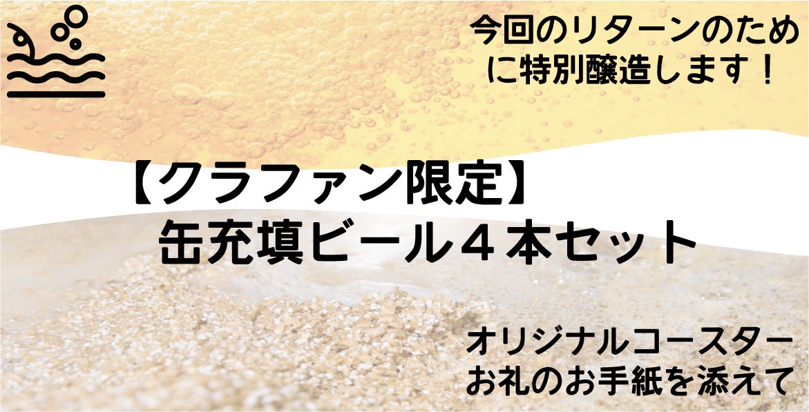 今回、新たに、5000円のリターン(缶充填ビール・4種類×各1缶)をご用意いたしました。支援はしてみたいけど、ちょっと手頃なリターンがないなあ、、、と思ってらした皆さま、どうぞよろしくお願い致します。