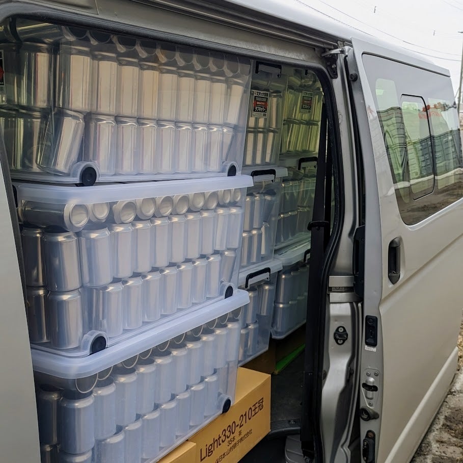 ただ、バルク買いすると、いっぺんに10トントラック1台分の缶が届くとのこと。さて、これにチャレンジするか検討を始めたのが、9月頃でした。