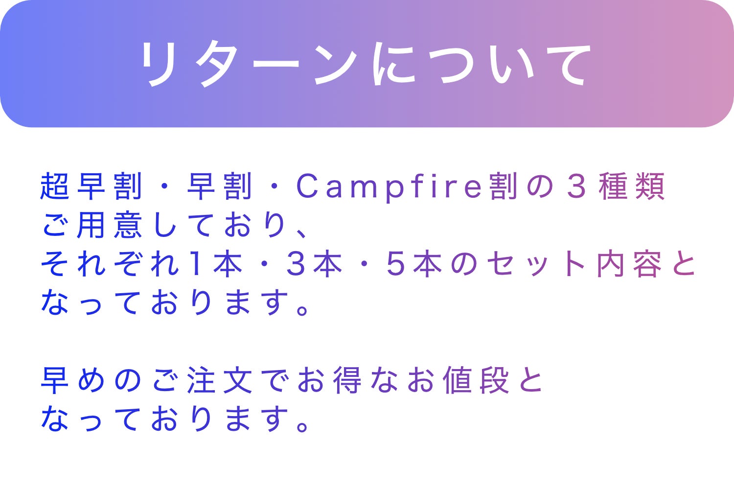 【Campfire割】完成した製品 x 5本 32,000円[一般販売予定価格 61,000円の50%OFF]