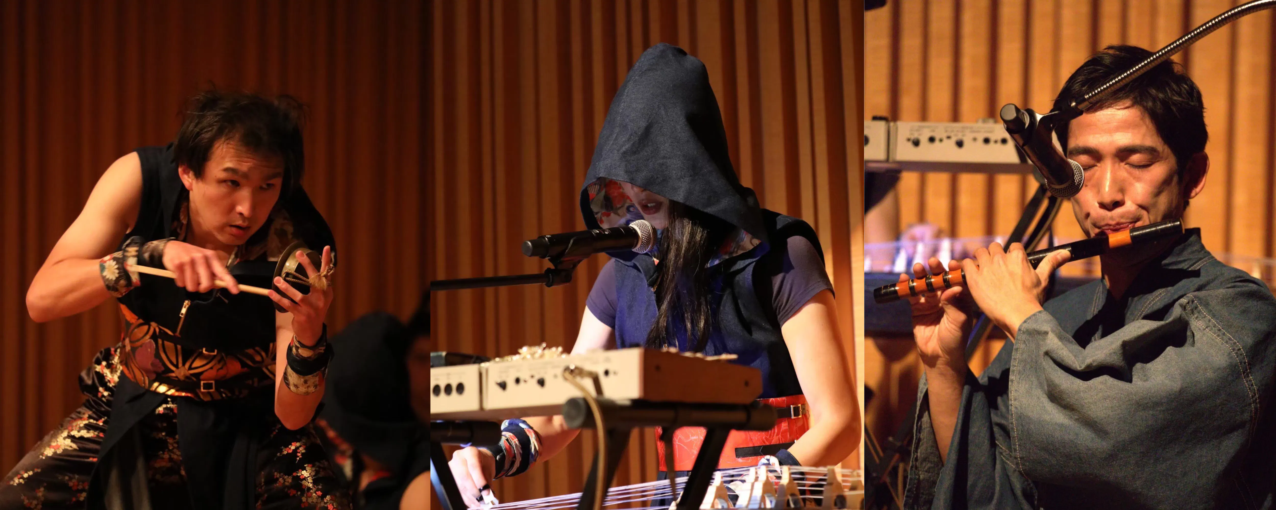和太鼓の概念を打ち破るアクロバティックな舞と、箏・鉦・笛を融合した新感覚な演奏を是非ご覧ください。
