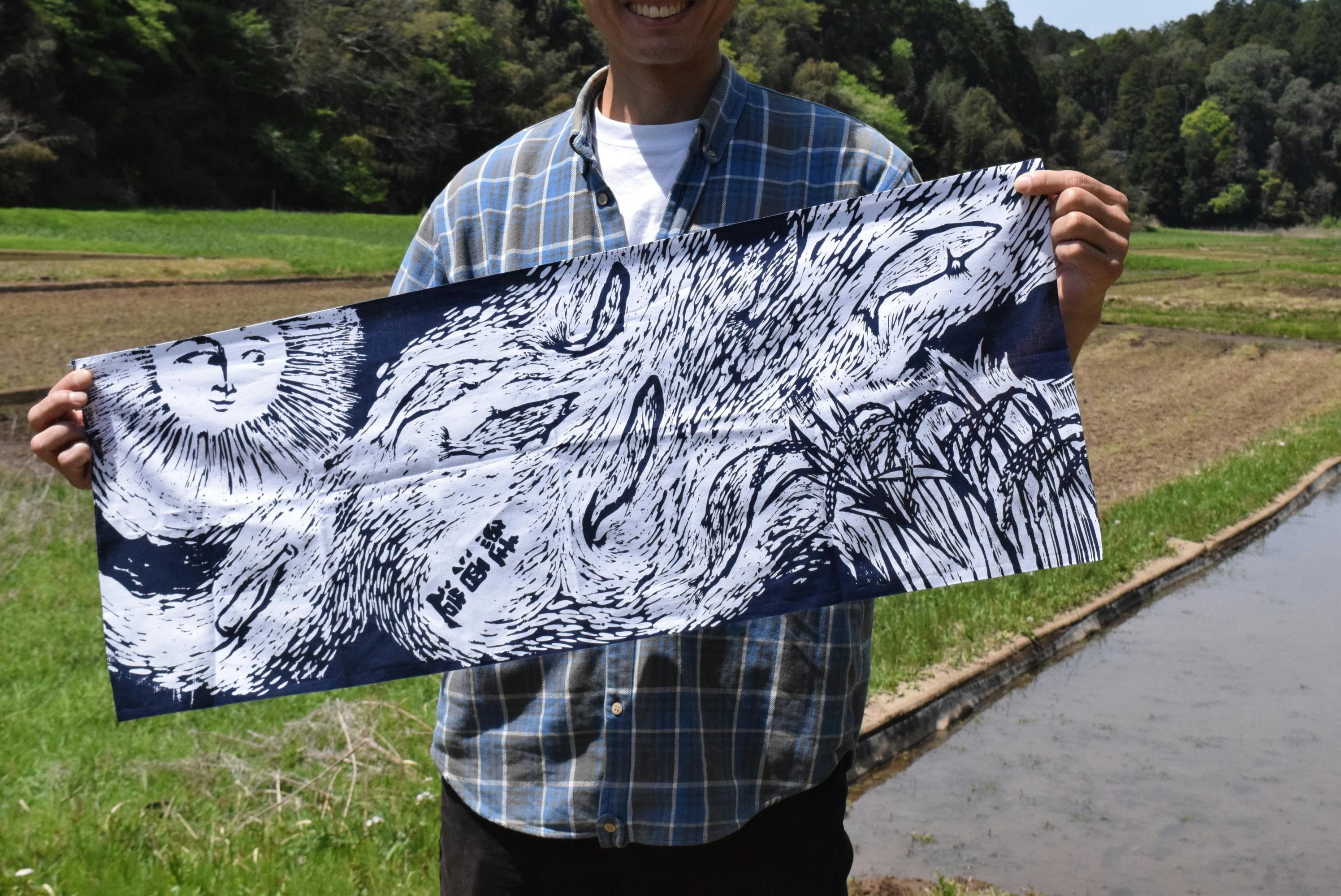 クラファン限定の手ぬぐいは、鮭の遡上を表した版画のデザインです。色は紺色を選びました。本染めのため、色落ちしにくく洗濯にも強いので、ぜひ色々な場面で鮭酒造の手ぬぐいを使っていただけると嬉しいです!