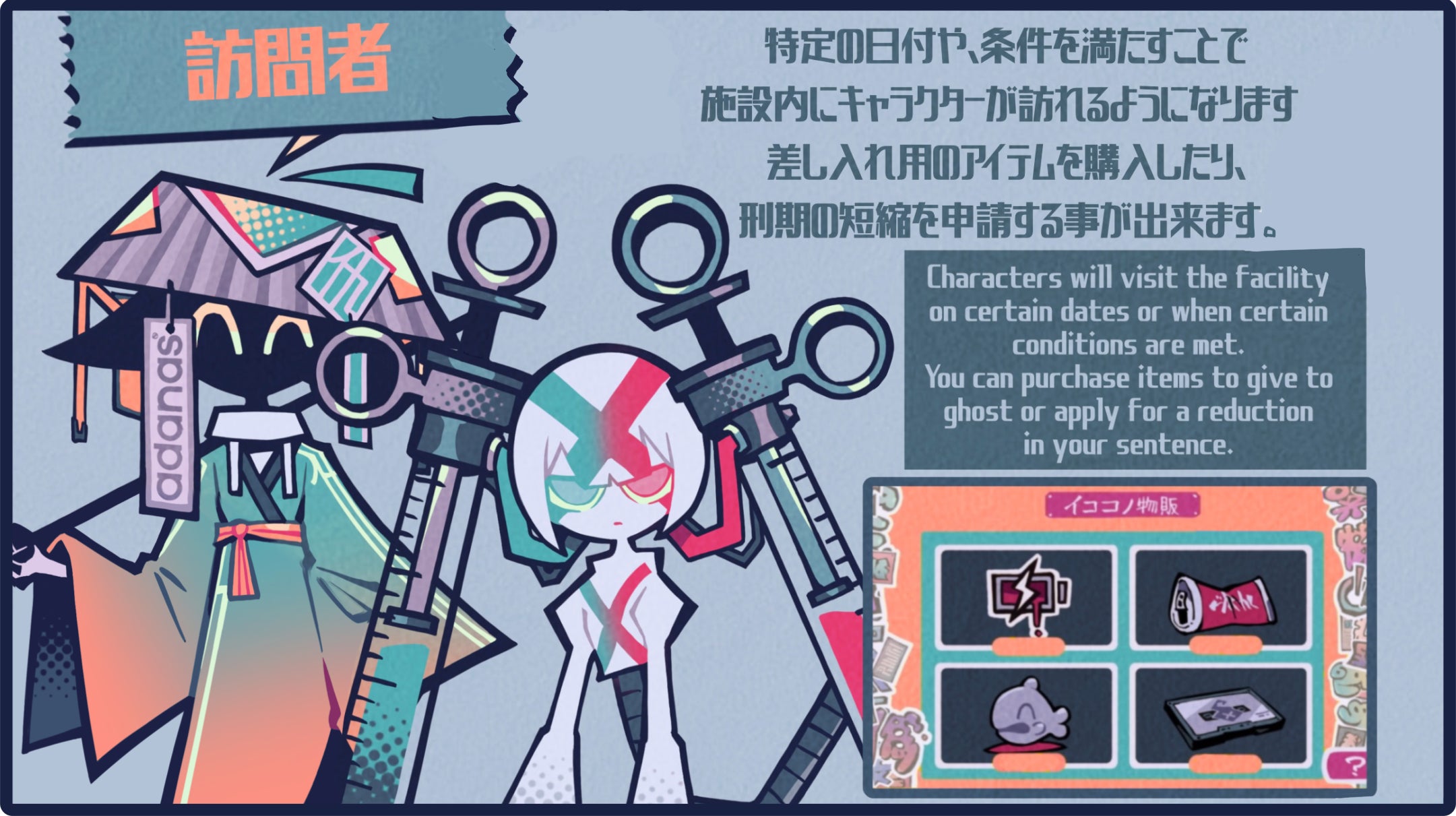 また、もしあなたがこの施設で過ごす上で好きなキャラクターに出会えた場合、この訪問者に申請して他の幽霊の刑期を短縮し、その分お気に入りのキャラクターの刑期を伸ばして多くの日々を共に過ごす事も可能です。