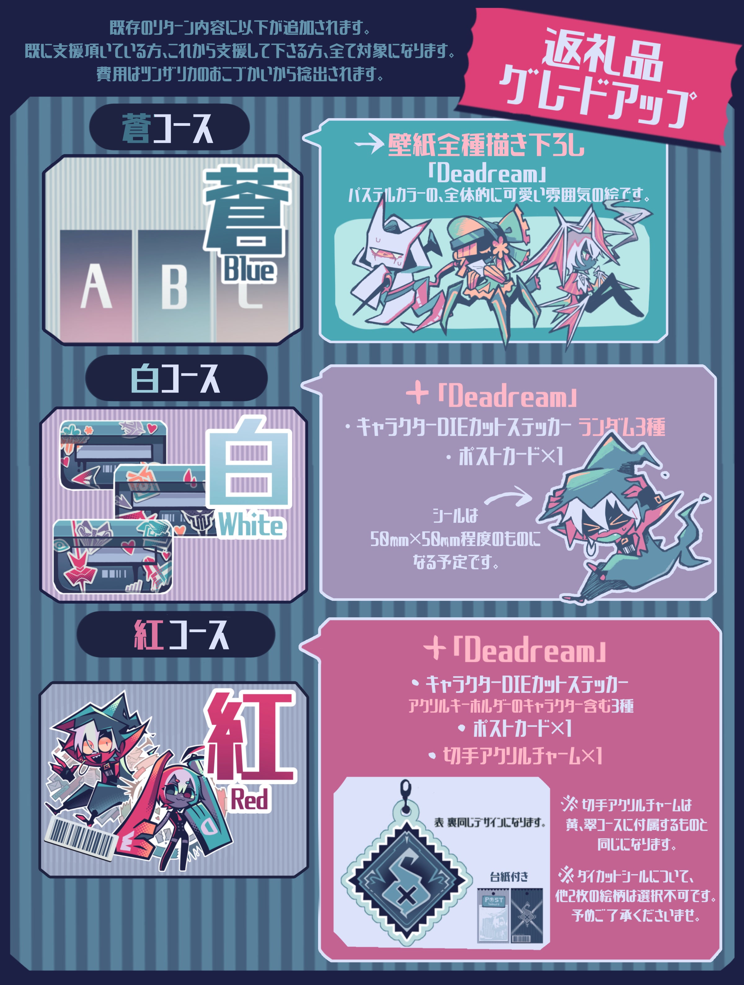 ・「Deadream」キャラクターDIEカットステッカー アクリルキーホルダーのキャラクター含む3種類