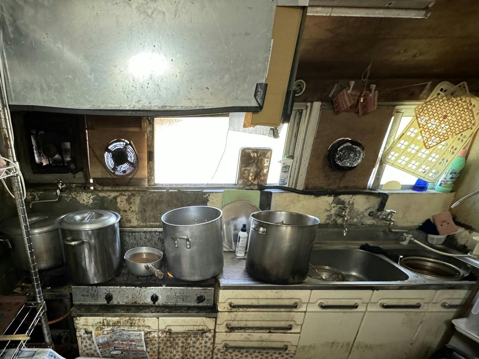 厨房はかなり狭く、動線もよくありません。消防上もかなり危ない状況になってしまっているため、厨房の改修をしっかり進めないと営業再開は難しい状況です。