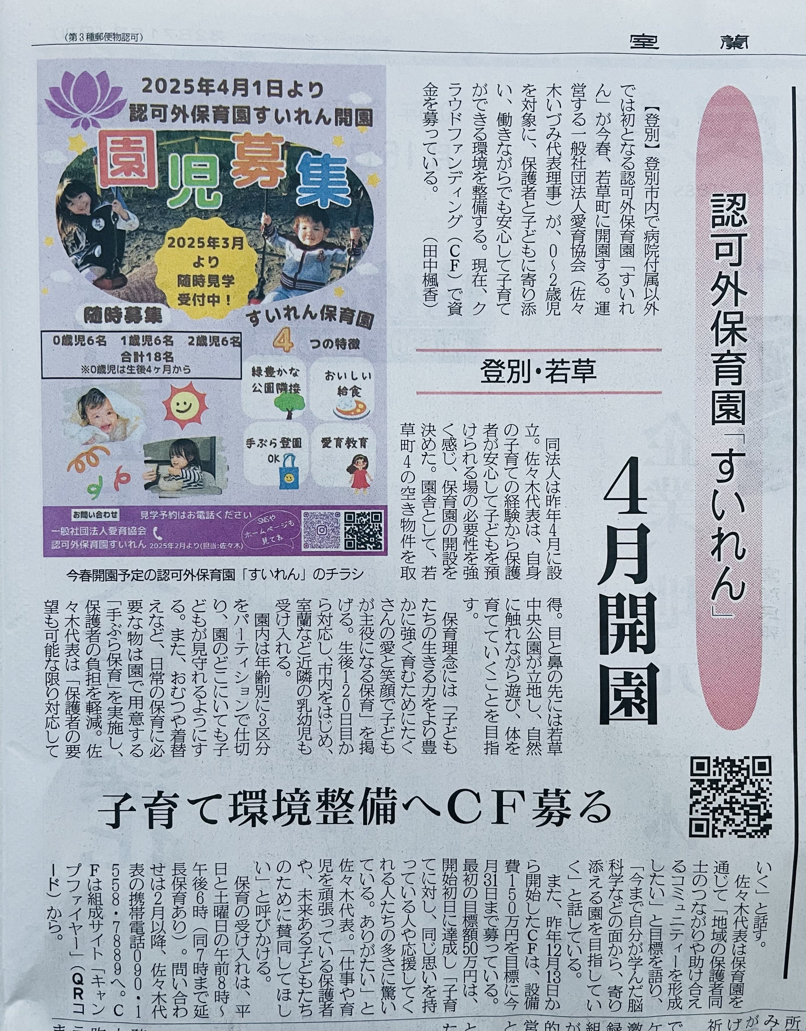 2025/01/16 18:342025年1月15日に、室蘭民報さんに掲載されました!素敵に紹介して頂き、感謝です!登別には認可外保育園がありません。国から支援がある保育園や幼稚園とは違い、支援がありません。未来の子ども達の為に、若い保護者さんの為に支援頂けると幸いです‼︎外観も綺麗になってきました!2月からは、内装工事も始まります‼︎子ども達が、笑顔で安心して楽しめる場所を作り上げていきます! もっと見る