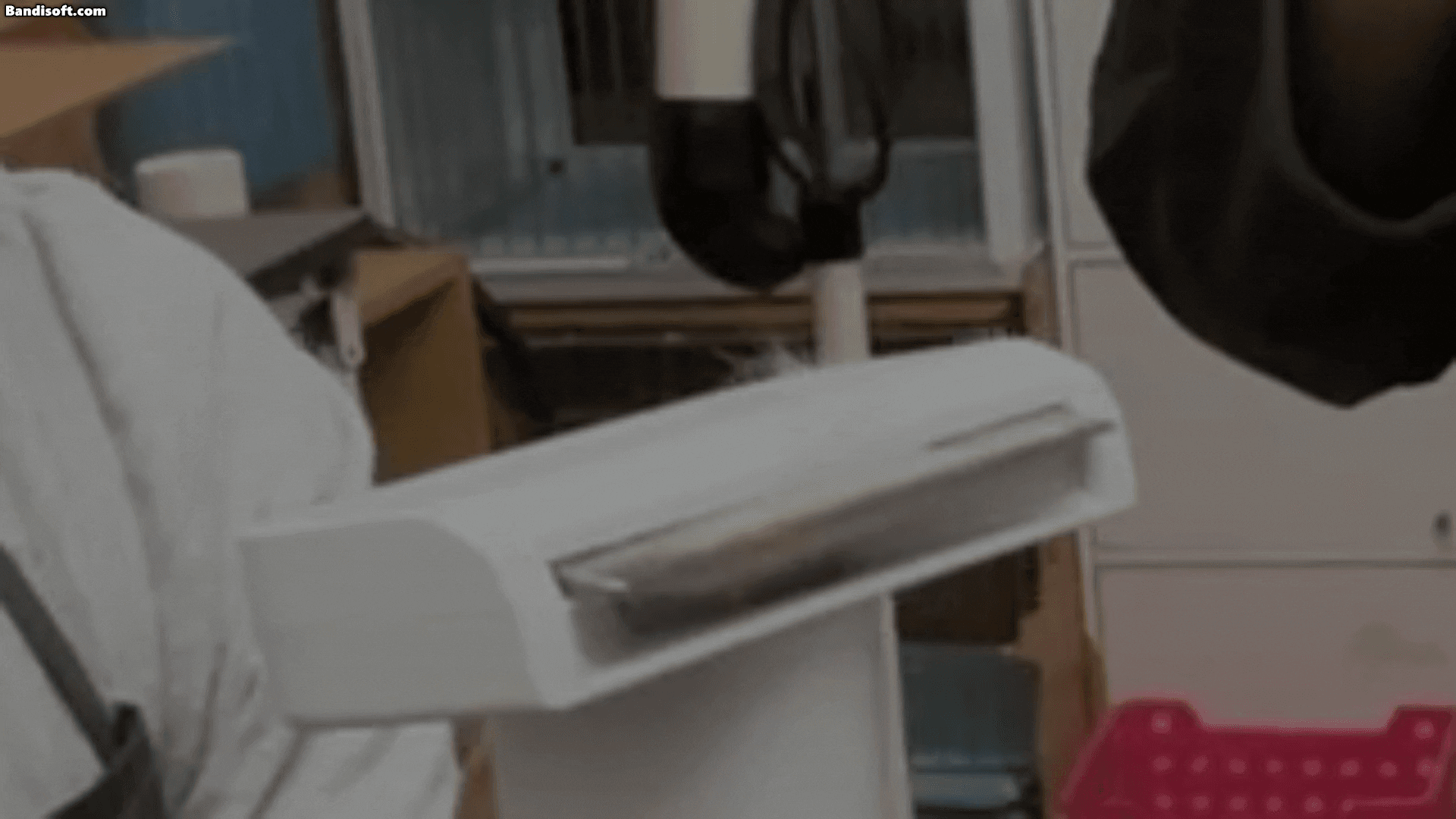 バリカンと掃除機が一体化しているので、カットしながら毛を吸い込みます。
