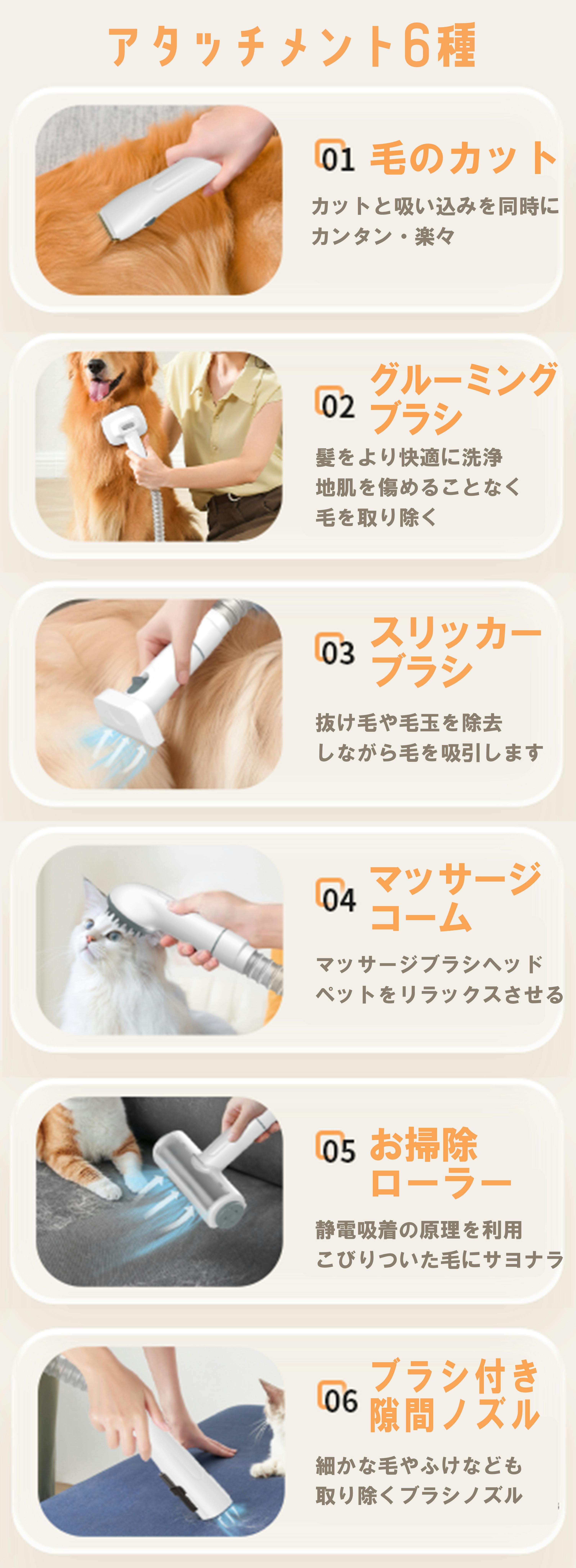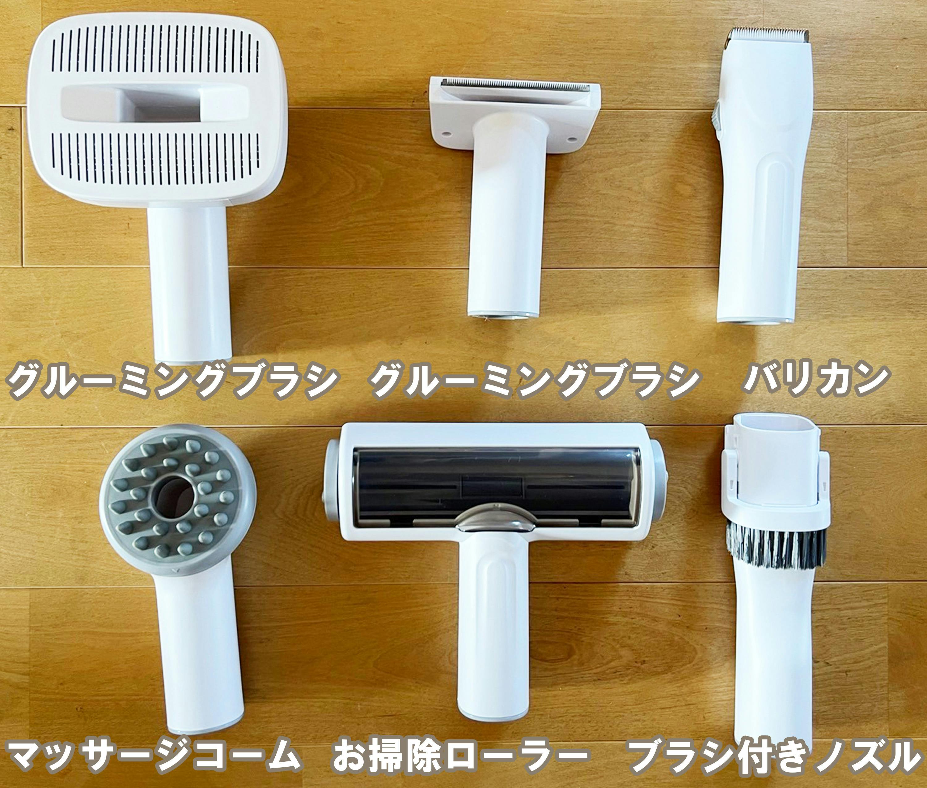バリカン以外に、ブラシ・コーム3種、お掃除ノズル2種を取り揃えました。