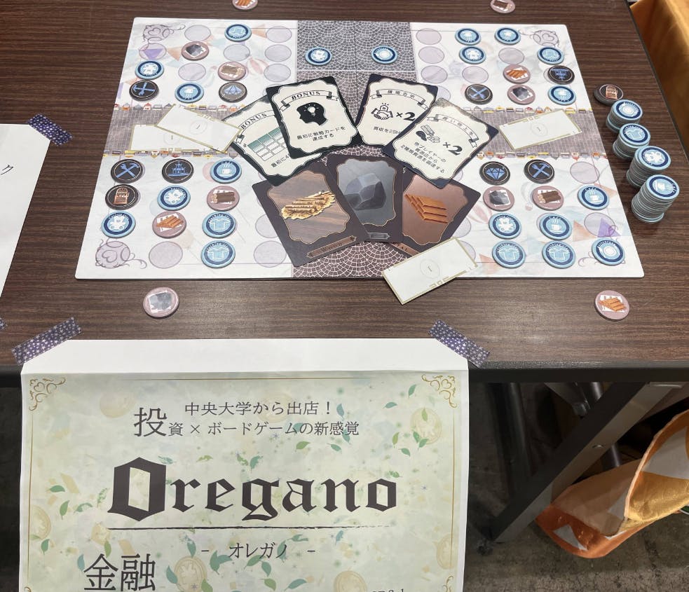 今回のOreganoは金融と書かれているものの、まずは「投資と回収」といった雰囲気に親しみを持ってほしいとの思いから、遊びやすさを意識したものになりました!ルールの作成からデザインまでを会員が相談して作成したものになります。多くの方のもとへお届けするためにも皆様のご支援が必要です、ご支援のほどよろしくお願いします。