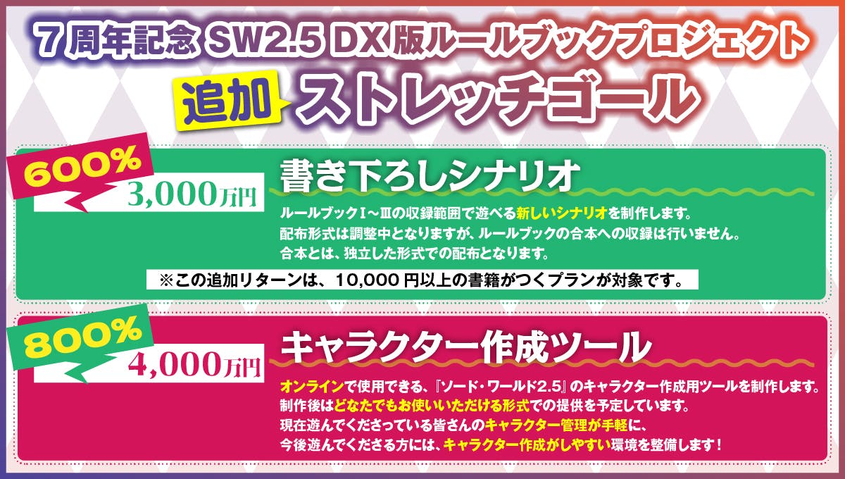 さらには、この機会に他のTRPGや、かつて『ソード・ワールドRPG』や『ソード・ワールド2.0』を楽しまれていた皆さんにも、『ソード・ワールド2.5』に興味を持っていただきたい。そのような想いから、今回、クラウドファンディングの実施を決定しました。