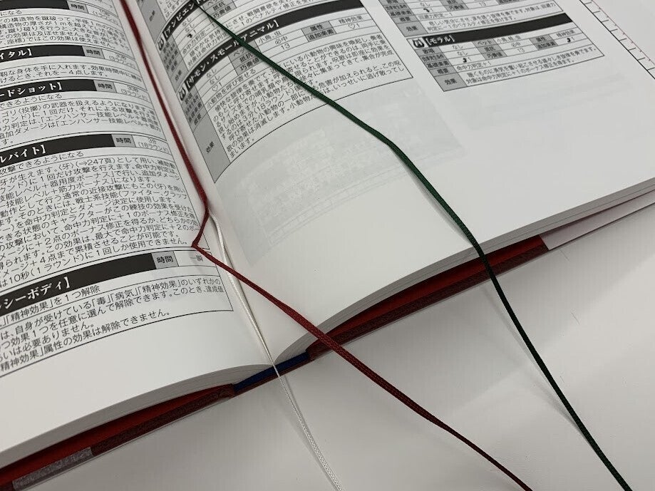 こちらは、当初は諦めるしかないかと考えていた部分だったのですが……たくさんのご支援をいただいたことで、予算的に追加が可能になりました(個人的に、ルールブックはしおりを挟んでおきたい箇所が多々あるものだと思っておりますので……是非とも追加したかった仕様でございます)。ありがとうございました。