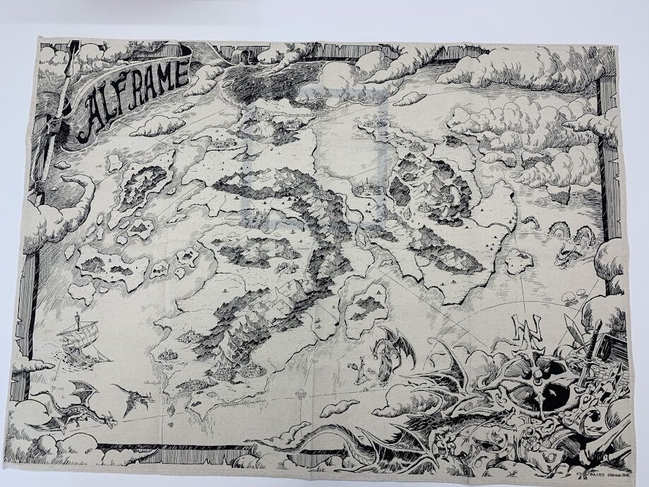 かんくろう先生が描いたアルフレイム大陸のイラストを布に印刷しました!