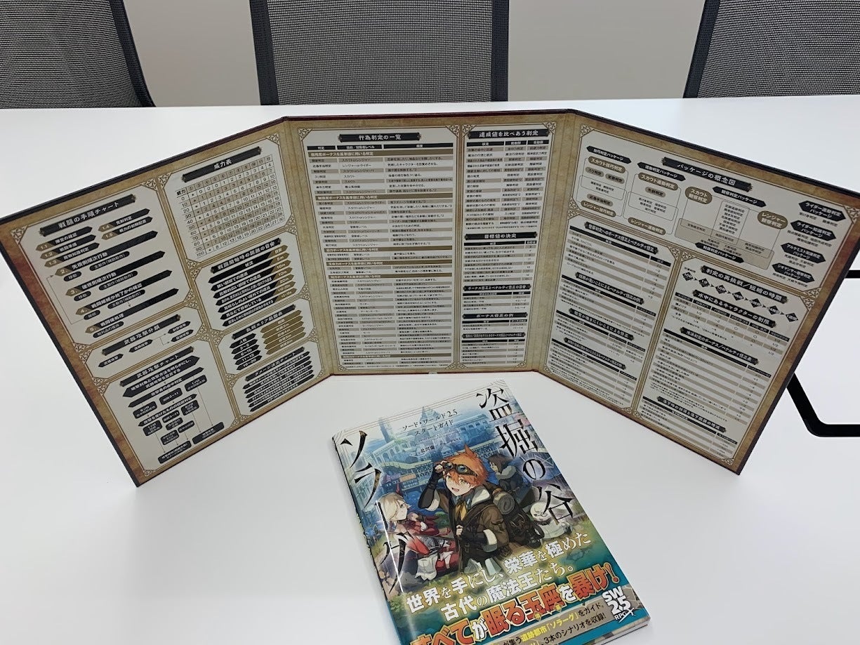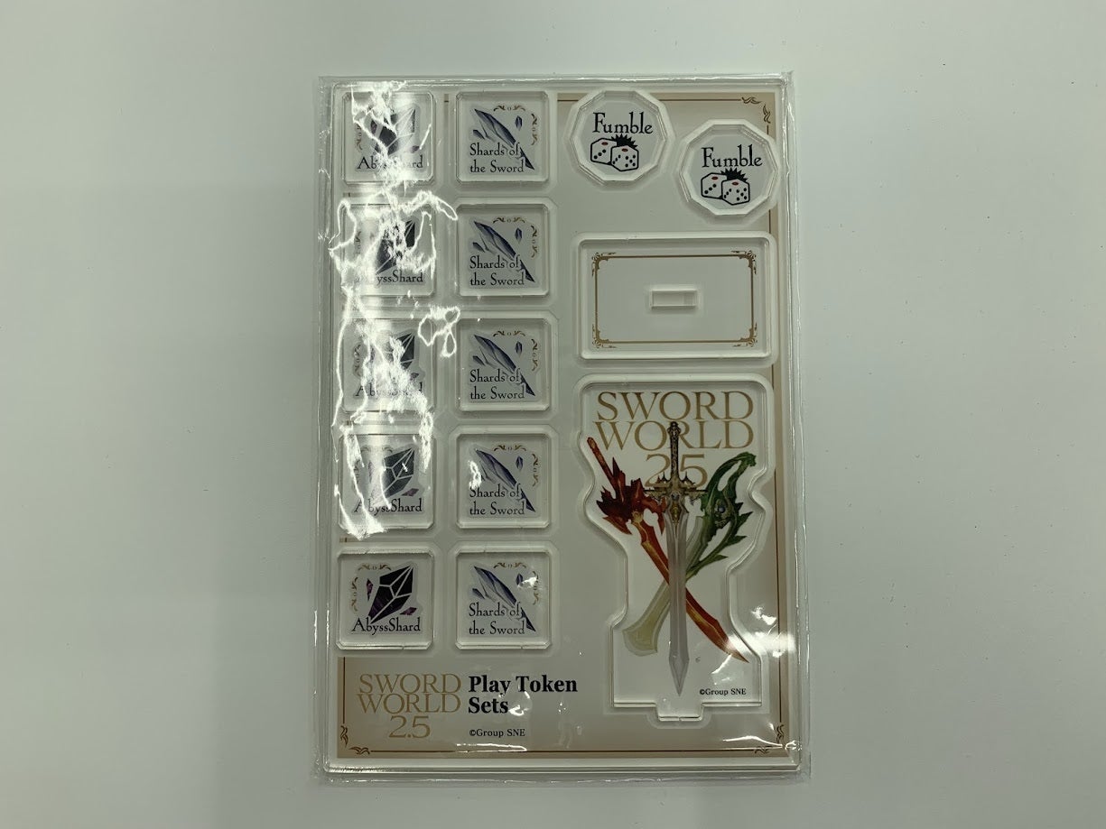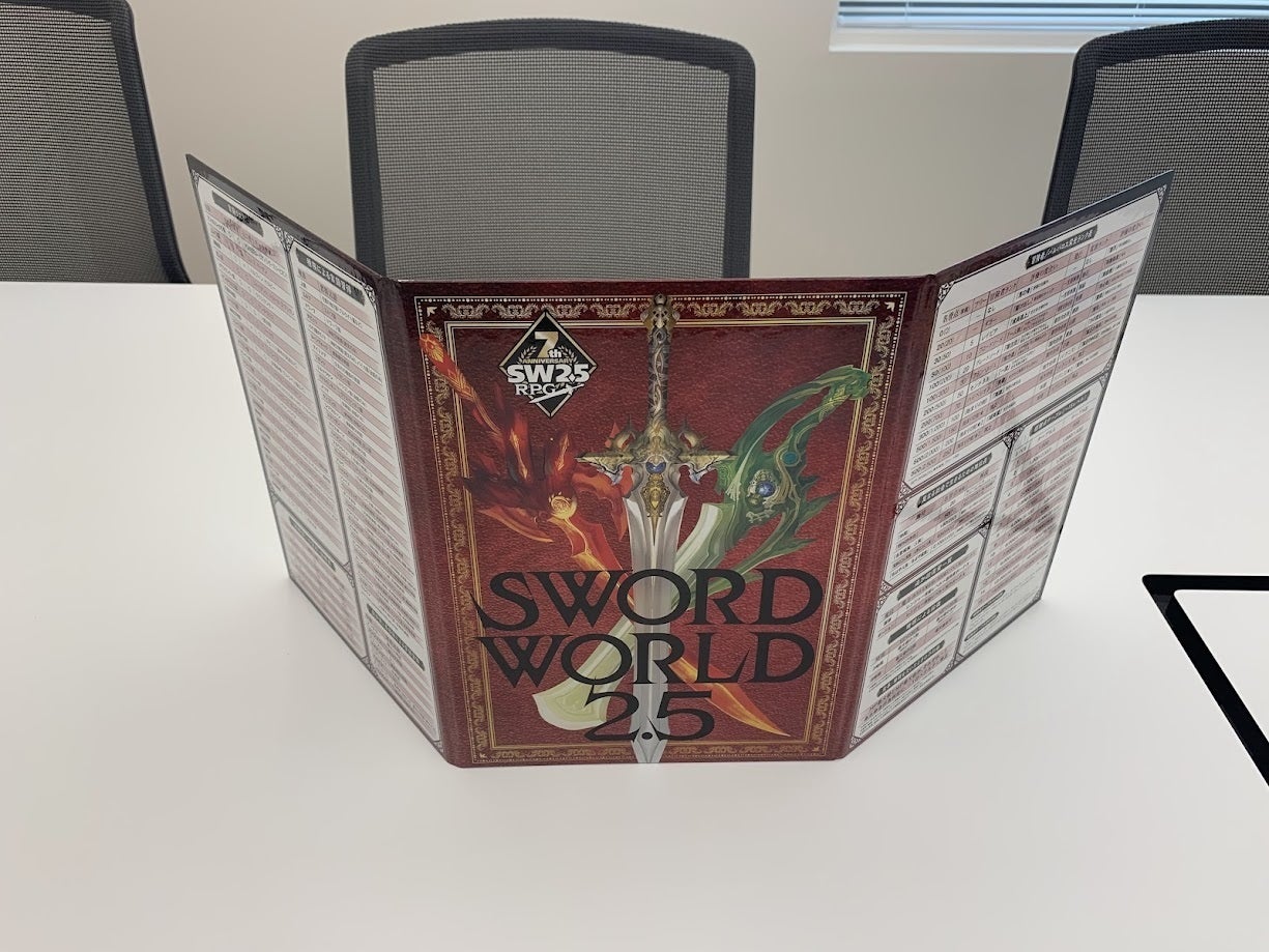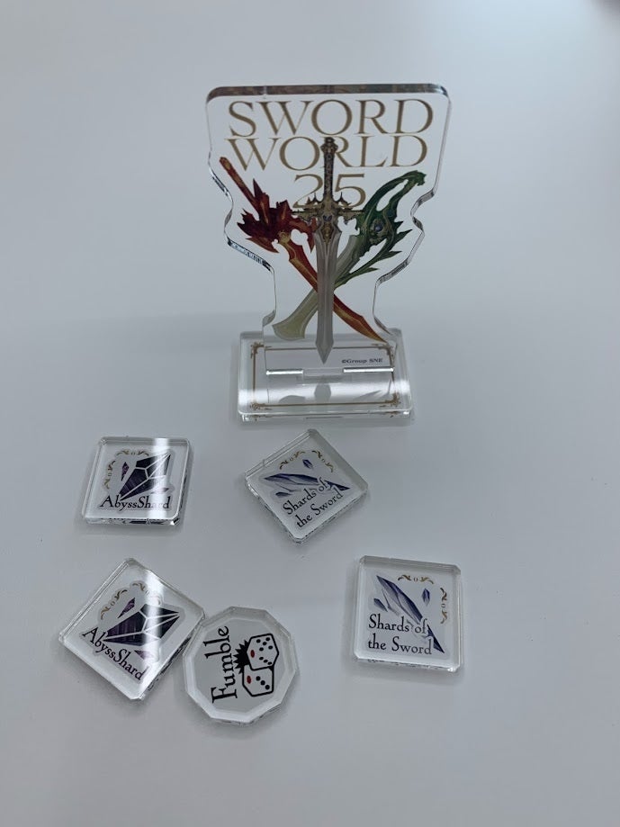 折角ですので、ロゴ部分も切り取って自立させられるようにしてみました。クラウドファンディングの記念品として飾っておくもよし、イベントなどで『SW2.5』を遊んでいるアピールに使うもよし、といったところでしょうか……?