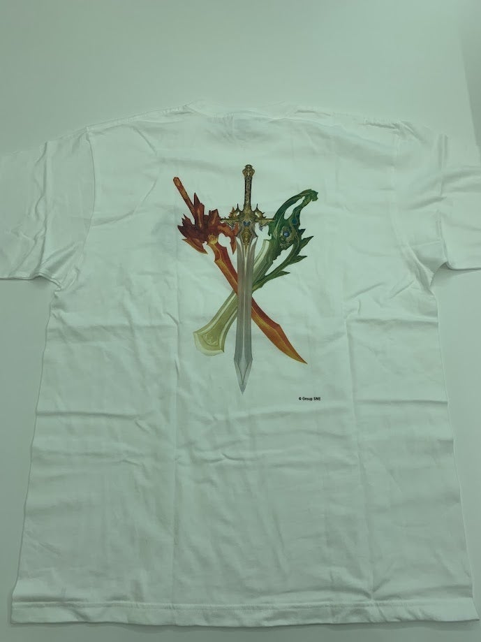 少し毛色の違うTシャツBは、胸元には小さなロゴを、背面に3本の剣をカラー印刷であしらっています。