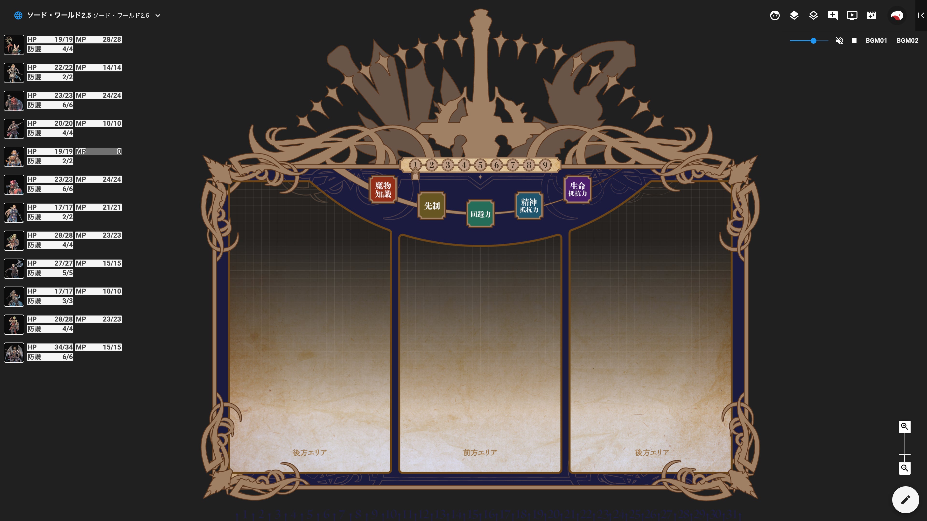 右端にアイコンありますが、一部の魔法・戦闘特技などの効果を簡易的に参照できるマーカーも同梱する予定です。