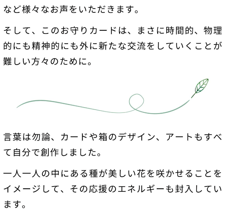 このお守りカードは、そんな「あなたの中にある答え」に気づくきっかけになればと願っています。