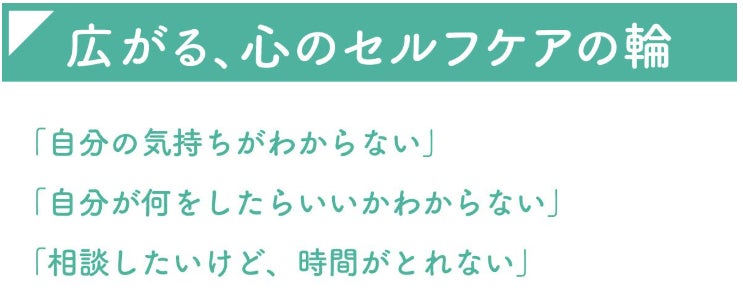 そして、心や身体に大きな不調が出る前に日々のセルフケアで心を整える習慣として。