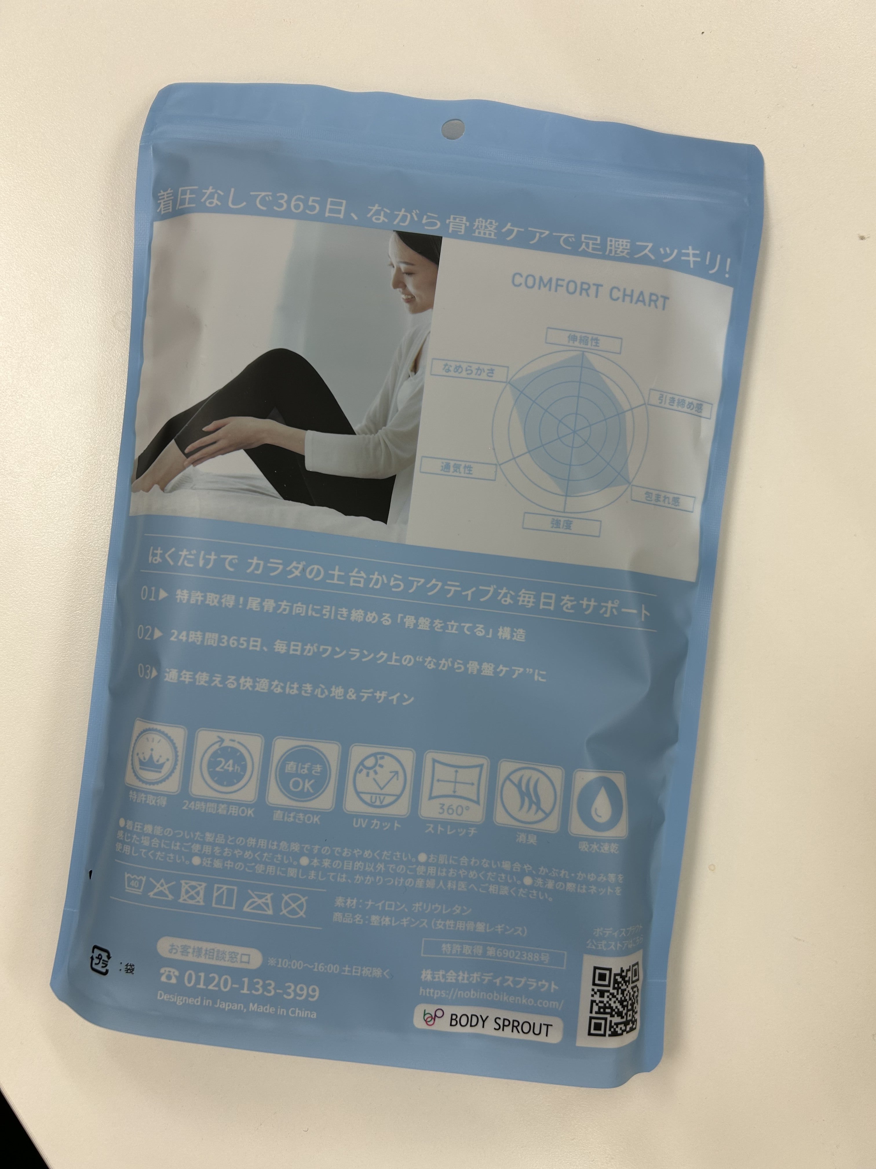 裏面は、整体レギンスの機能や、